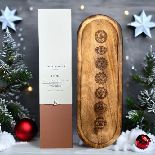 Featuring a harmonious blend of amber woods, earthy musk, tonka bean, and mitti, Earth is your gateway to peace and tranquillity. Paired with the hand painted Heer Kashmiri incense holder which makes for a beautiful trinket tray when not burning incense. The EARTH GIFT SET costs £35 from templeofincense.com