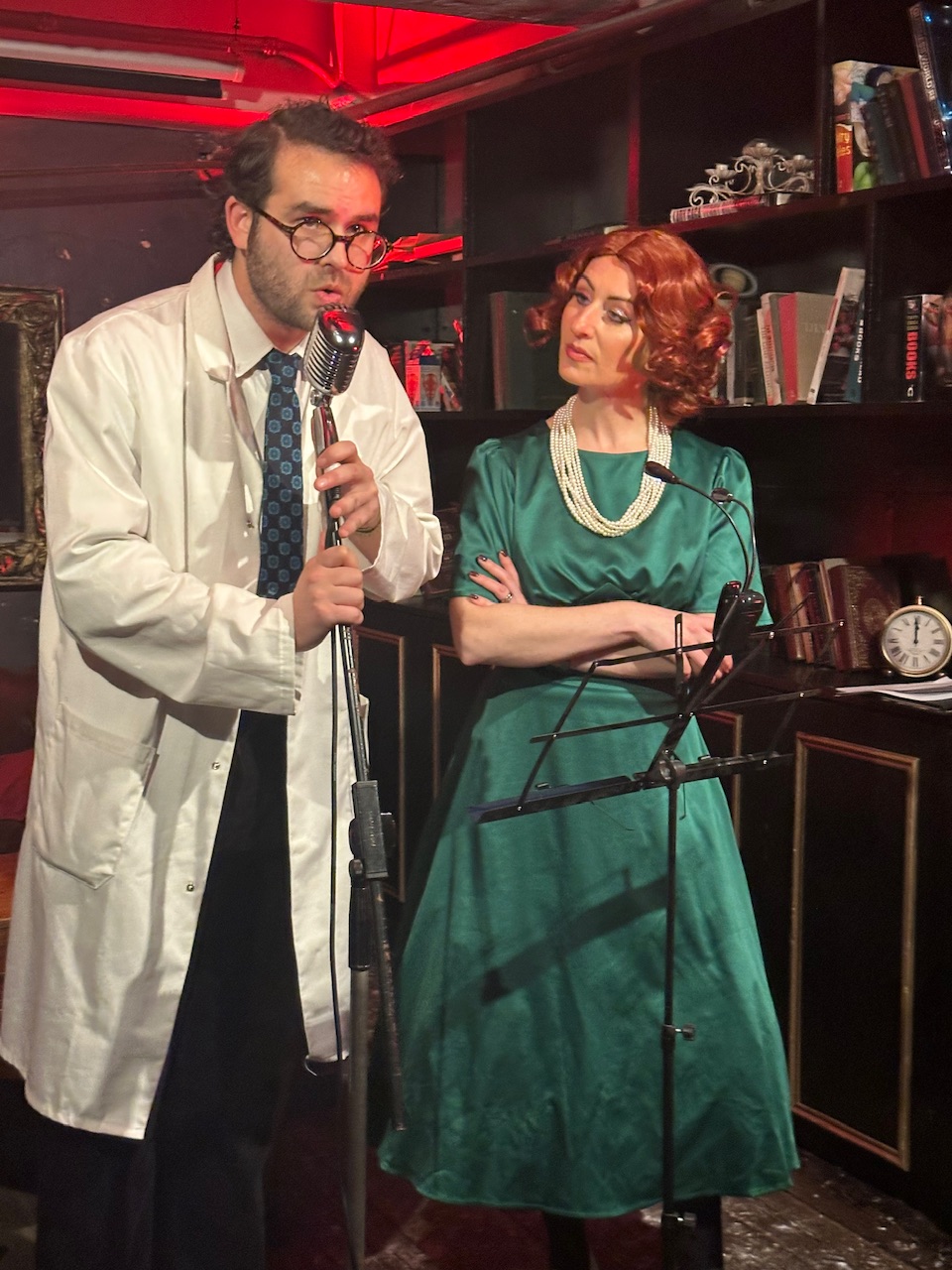 The evening began with smooth jazz and a warm welcome from ‘Ms Polly’, the bar’s fictional owner, before tragedy struck: a young violinist was found dead in her dressing room. It’s up to us, the audience, to find the killer. Was it the jealous fiancé? The idealistic doctor? The business owner? Or the fascist socialite?