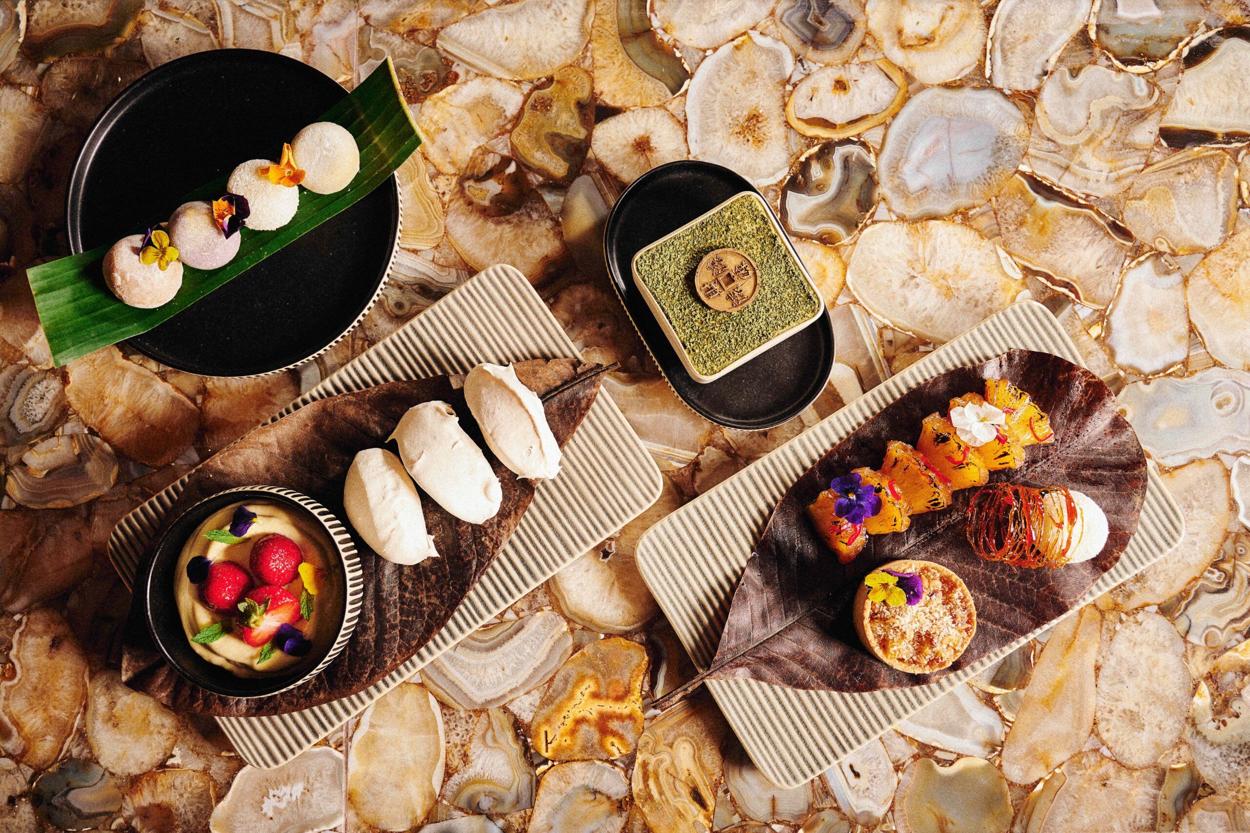 Desserts include Matchamisu; Pavlova with white miso and a selection of Mochi.
