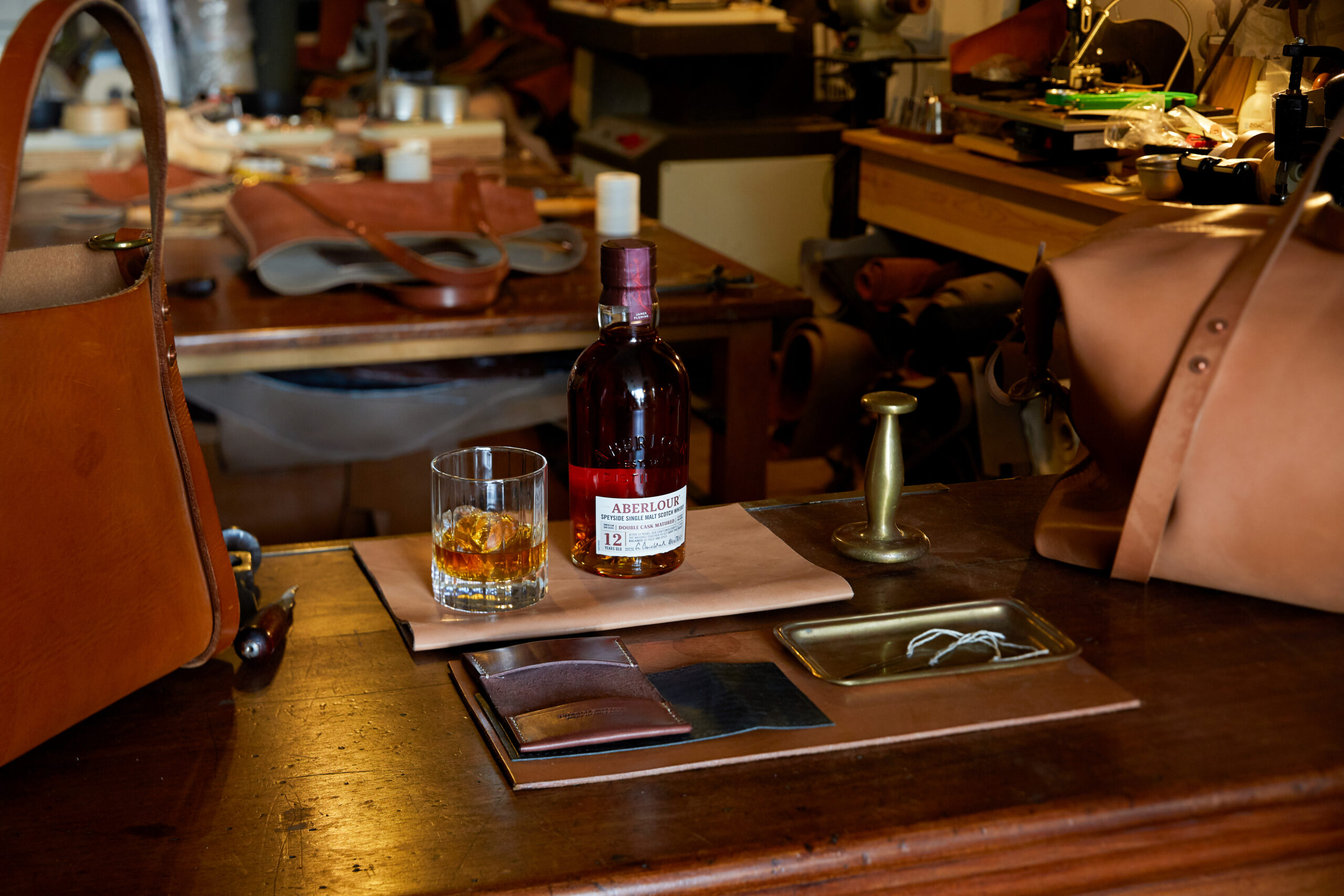 Aberlour has an unrivalled depth of experience that delivers the outstanding quality for which the whisky is famed. The brand has spent 144 years refining its craftsmanship, character and complexity, and bringing all aspects together in perfect harmony is the secret to Aberlour’s success. It is with the same dedication to outstanding quality and complexity in creation which can be found at Charlie Borrow’s workshop, with his intricate creations and timeless designs. You will not find ultra-modern machinery to speed up production, nor witness manufacturing methods to cut corners or costs. The products are made to last and age in a beautiful and natural way creating leather goods that make lifelong companions.