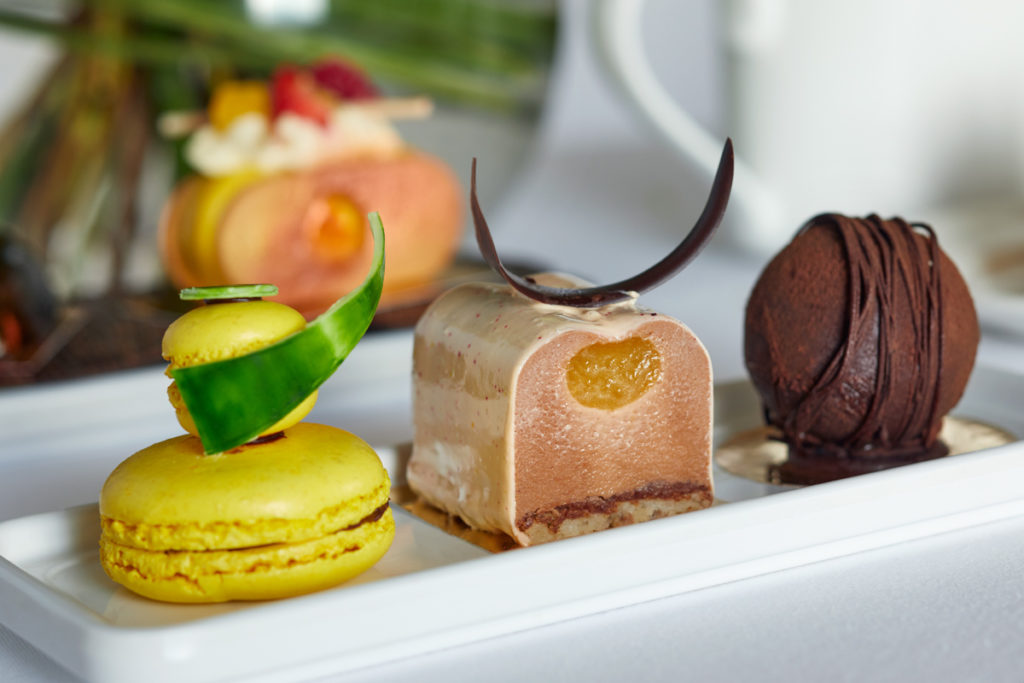 We began with the stable pieces; English scones, both plain and raisin. Served warm with whipped cream and strawberry jam, they were pretty much everything that a proper English scone should be. We were a bit suspicious of the caramel sauce, not something scones are usually served with, but it worked damn well. The more extravagant options; Mandarin cheesecake, pina colada cake, tiny macaroons, were equally delicious. Very sweet is must be said, but chances are you wouldn’t be booking a cake led afternoon tea like this if you weren’t an absolute sugar fiend like myself. Proving to be to much for us to finish, our waitress kindly offered to package up the remainder of our feast to take with us, which judging by everyone else’s little boxed up packages was very much the norm here.