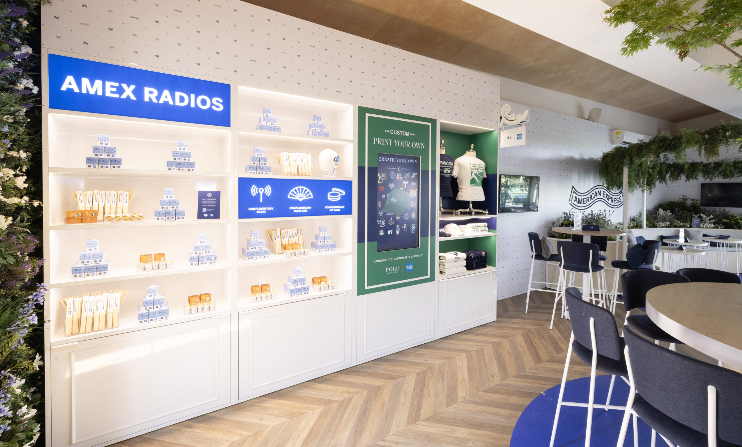 Ralph Lauren Partnership featuring a ‘Create Your Own’ area in the Cardmember Lounge. For the first time at Wimbledon, guests will be able to personalise a section of Ralph Lauren products and accessories, including the iconic Polo Shirt, with Wimbledon 2023 custom designs, including two exclusives only available in the Cardmember Lounge.