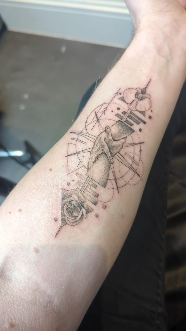 Matt’s artistic journey began with fashion design and art foundation courses at the University for Creative Arts, where he discovered his passion for the human form and the interplay between clothing and art. Influenced by brands like Ed Hardy and Von Dutch, he transitioned into tattooing. His early exposure to computer-aided design became instrumental in his artistic process.