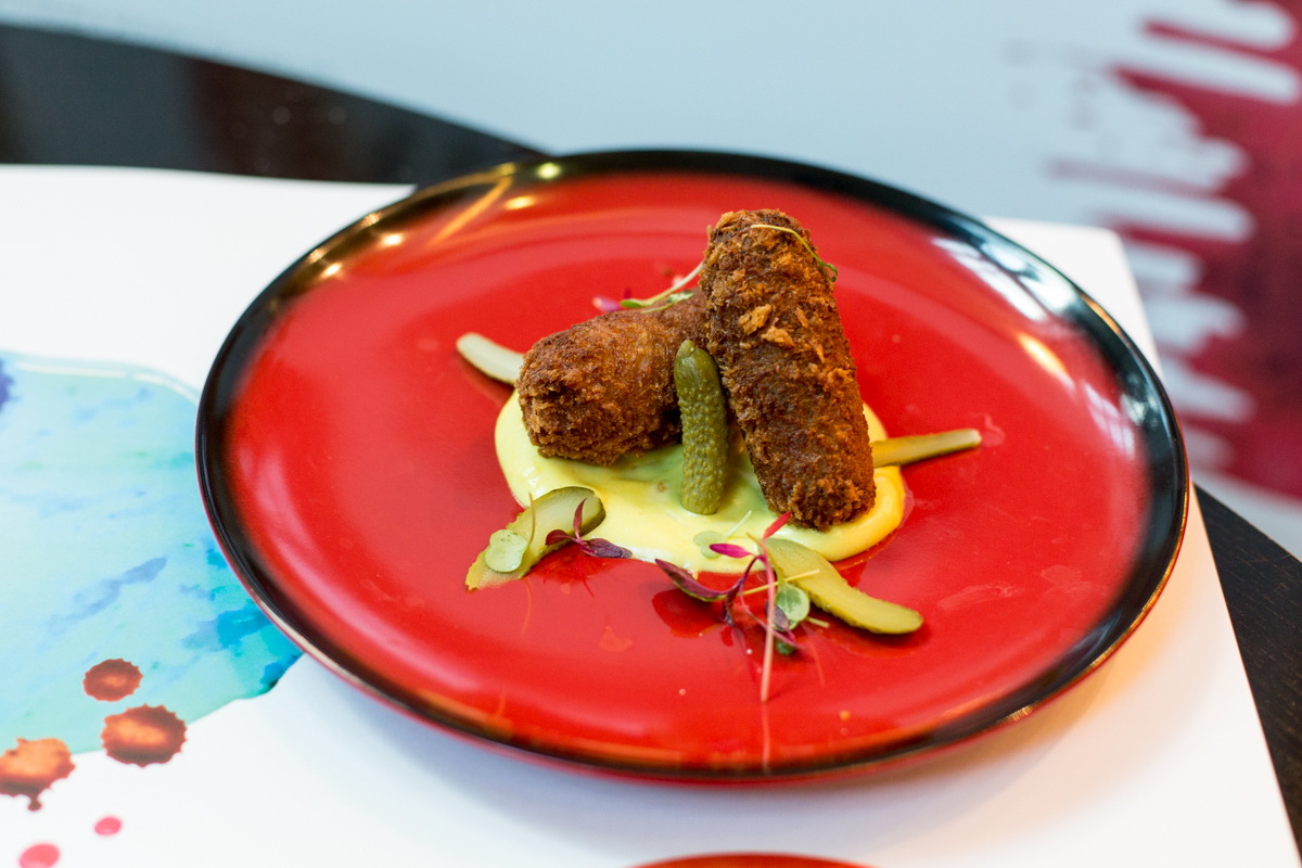 Right lets start with the salt beef and gherkin croquettes, which came on top of mustard and parsley. The salt beef was juicy and the croquette was nice and crunchy, but not overly cooked. It was the first dish to have tucked into and I was very happy.