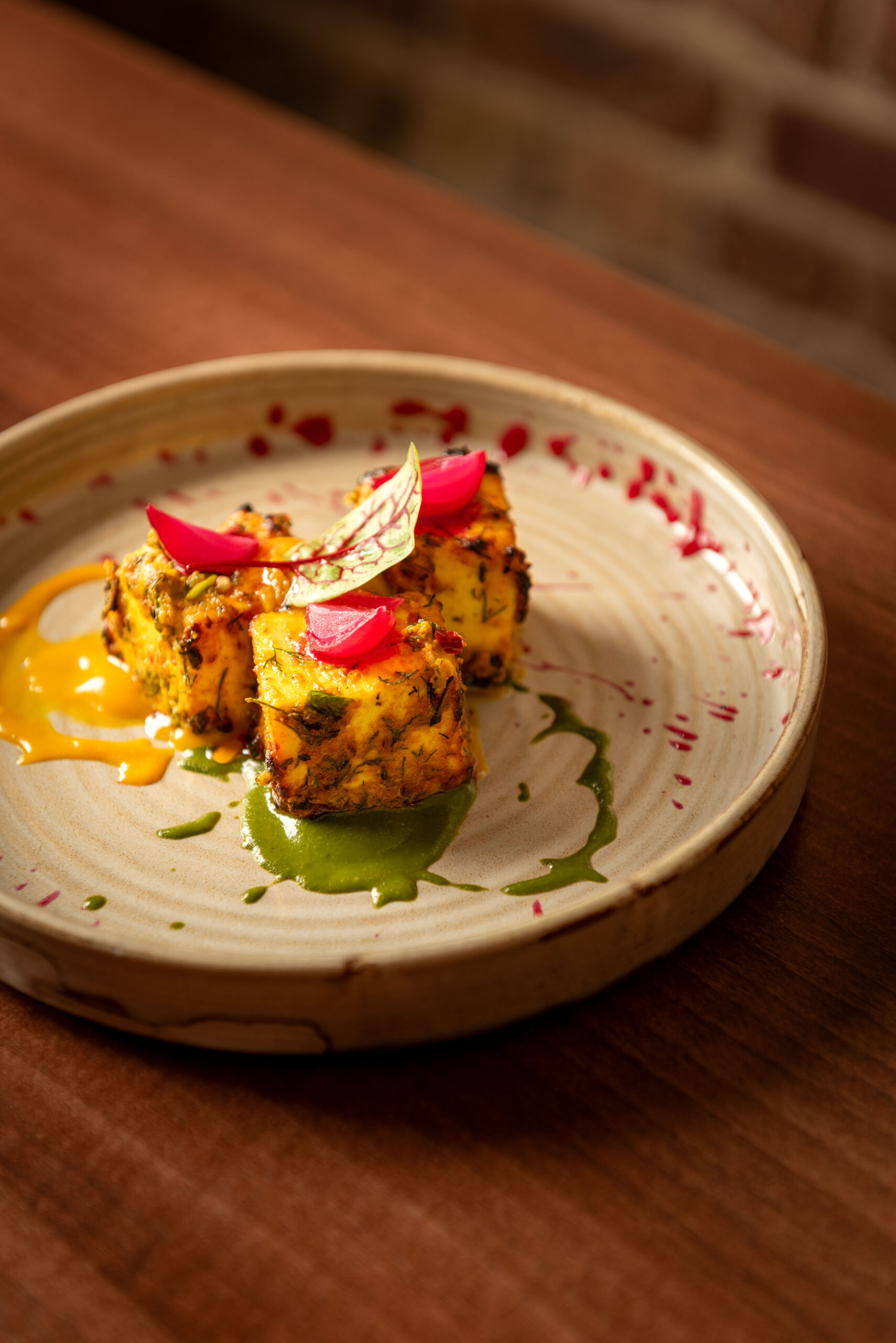 Now suitably lubricated, it was on to the food. To start, we ordered Crab bonda (Tempered blue crab meat dumplings, mint coriander puree), Bihari kebab (Char grilled lamb strips, Bihari garam masala, cinnamon, smoked chilli) and a special prawn dish. The flavours were BOOM, powerful and impactful. The presentation was also second to none, each dish a work of art in itself.