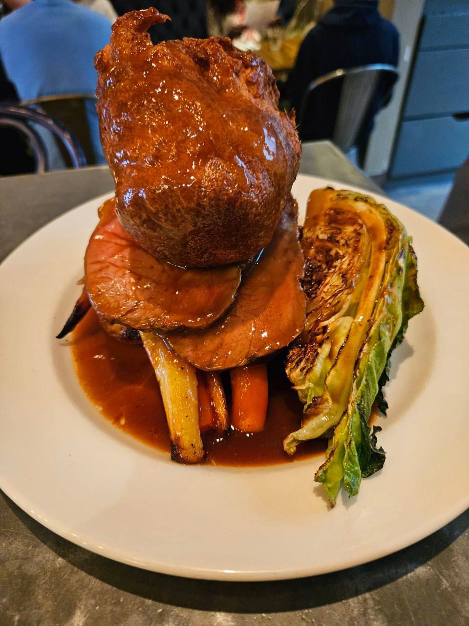 For the main event, we tried the Roast Beef and Roast Chicken. No word of a lie, the chicken must have been a whole chicken, it was positively gargantuan. Each was served with fresh vegetables, crispy roasties and a large flaky Yorkshire Pudding. No complaints here, the meat was cooked well, everything was hot and tasty and the gravy was rich and flavoursome.