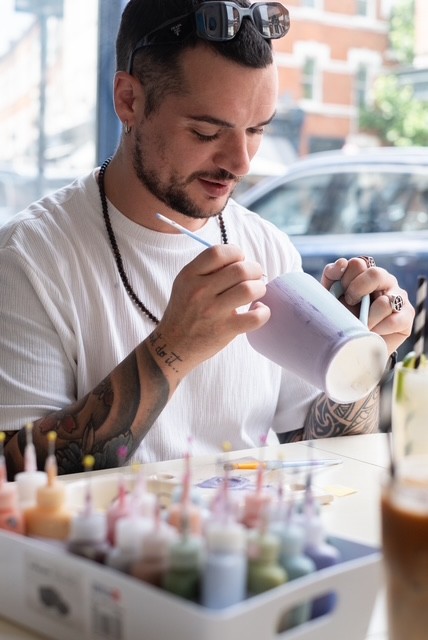 At Battersea, or rather Clapham Junction, the layout is calm and bright, with a relaxed studio at the back, and a front shop and café to ease you in and out of the creative zone. You’re surrounded by others quietly painting, but your work remains your own, it’s personal, relaxing, absorbing. The staff are there to assist, but they don’t rush you; they guide lightly when asked, or step back when you’re in the flow.
