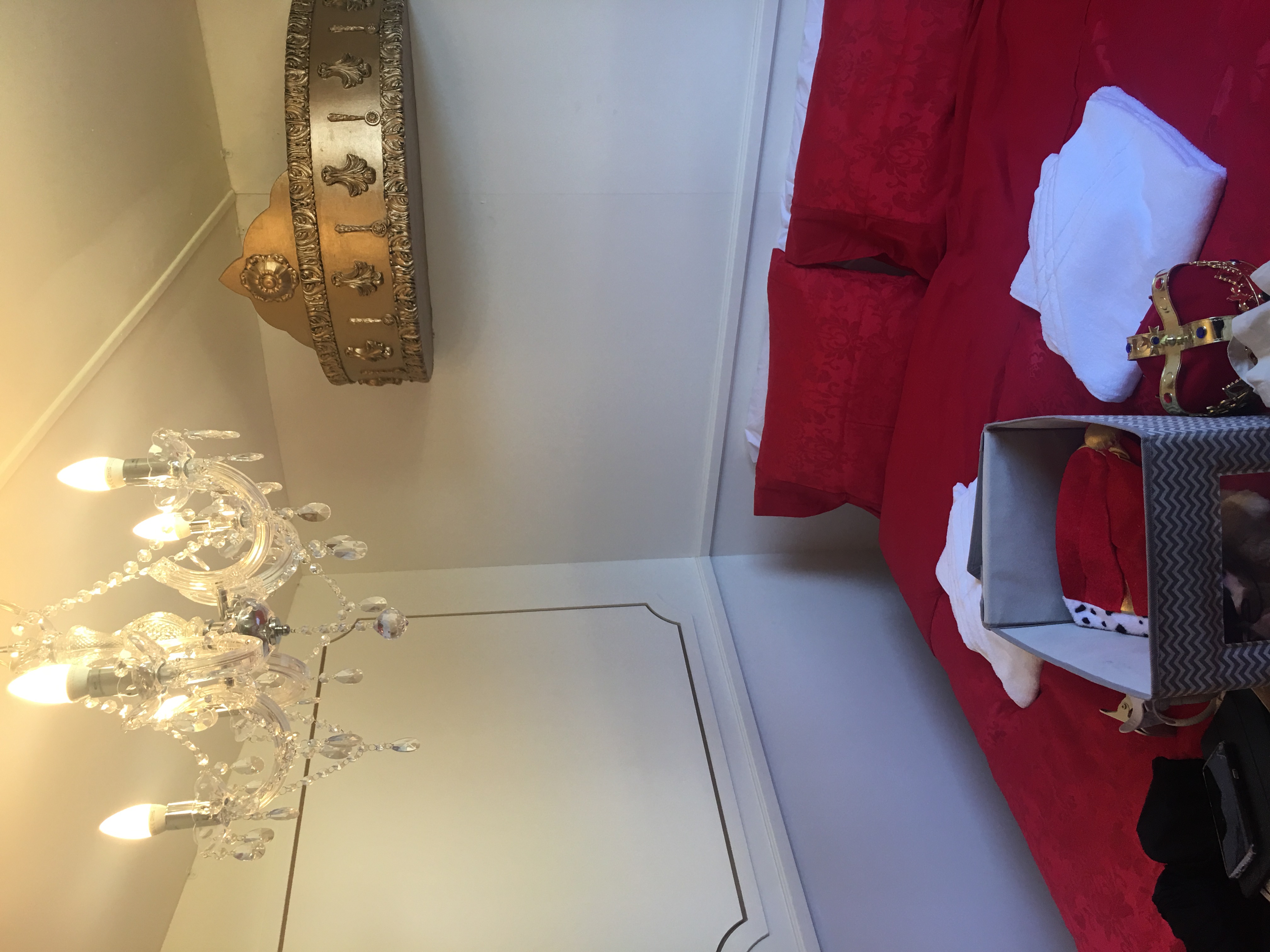 The rooms are all themed around different Netflix TV Shows – they’re all so cool! From the prison themed Orange Is The New Black Room to the Narcos themed drug dealers den. We spent the night in The Crown room, a regal room fit for royalty! Throughout our Netflix binge we ordered room service from a menu of gourmet food and drink inspired by binge-watching hits. Depending on what room you’re in, is how your food is served. So being royal… our food arrived on a silver platter! We felt pretty cool as we ate in our royal costumes which were supplied in the room. The crazy pies (pun intended) we chose to eat were delicious but we did get envious of other guests home made burgers.