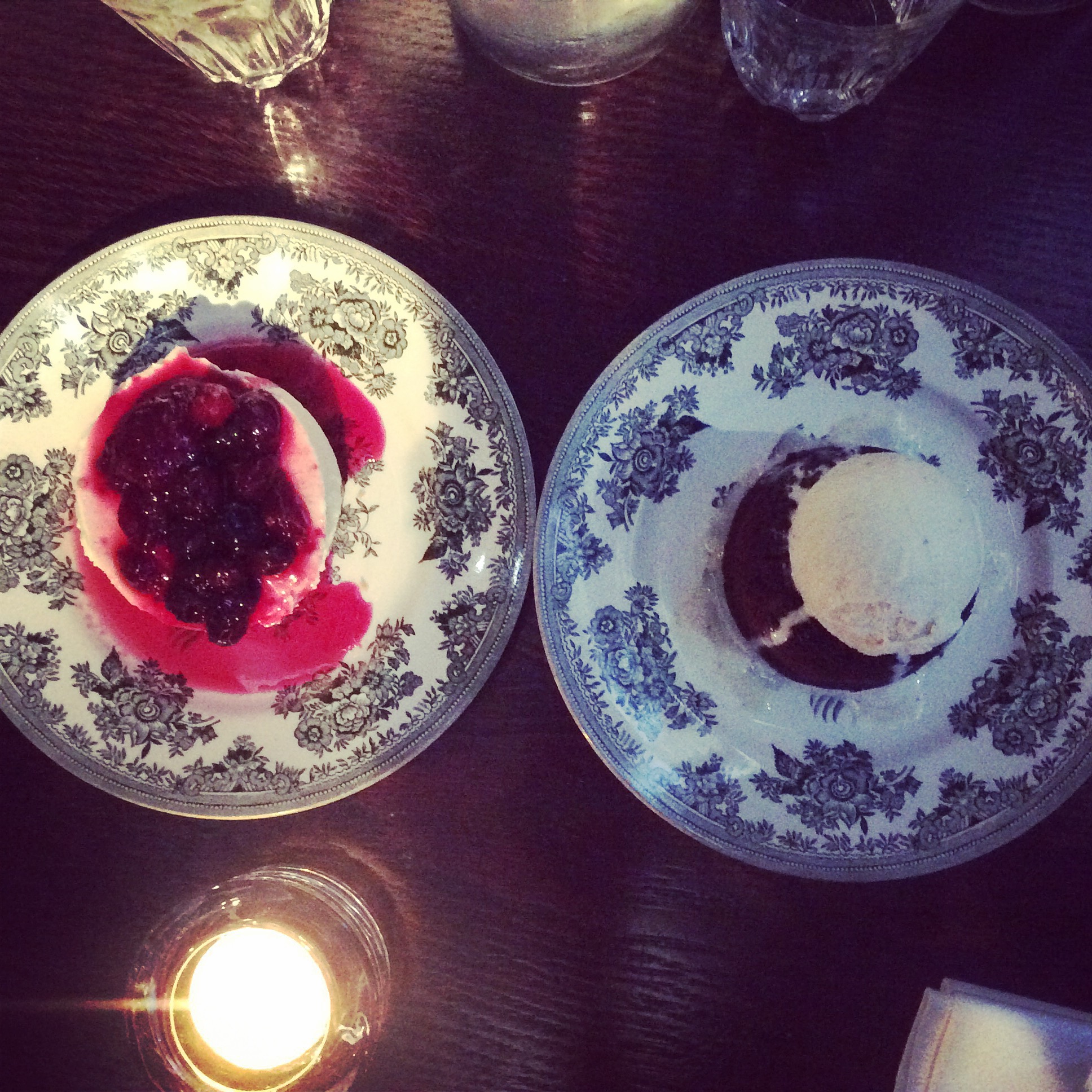 We made sure to leave room for dessert! A Sunday treat. We chose polar opposites in a chocolate fondant pudding and autumnal fruits cheesecake.