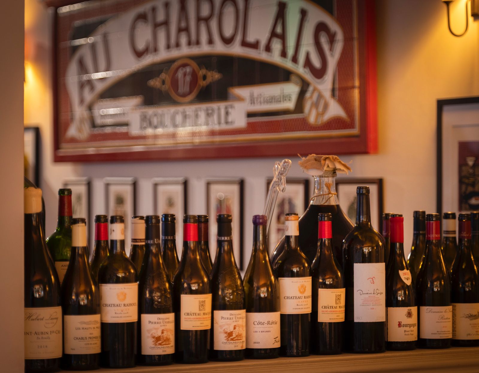 The interiors lean wholeheartedly into French bistro chic without tipping into parody. Multiple trips to Parisian flea markets have paid off: witty sketches and cartoons line the whitewashed walls, while polished copper pans and an original “Boucherie” sign add authenticity. It all feels collected rather than curated, stylish, playful and entirely at ease with itself.