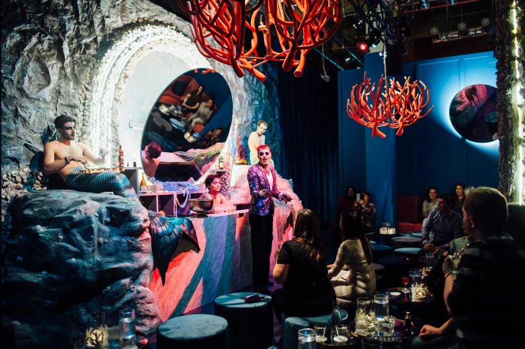 Upon making it safely to the other side, we arrived in Aladdin’s cave filled with gorgeous gemstones and Crystal Skulls. But the real marvels were waiting for us in the next room. Ruby, our lovely host created us with cocktails as we gazed in wide eyed wonder at three merman lounging on the bar.