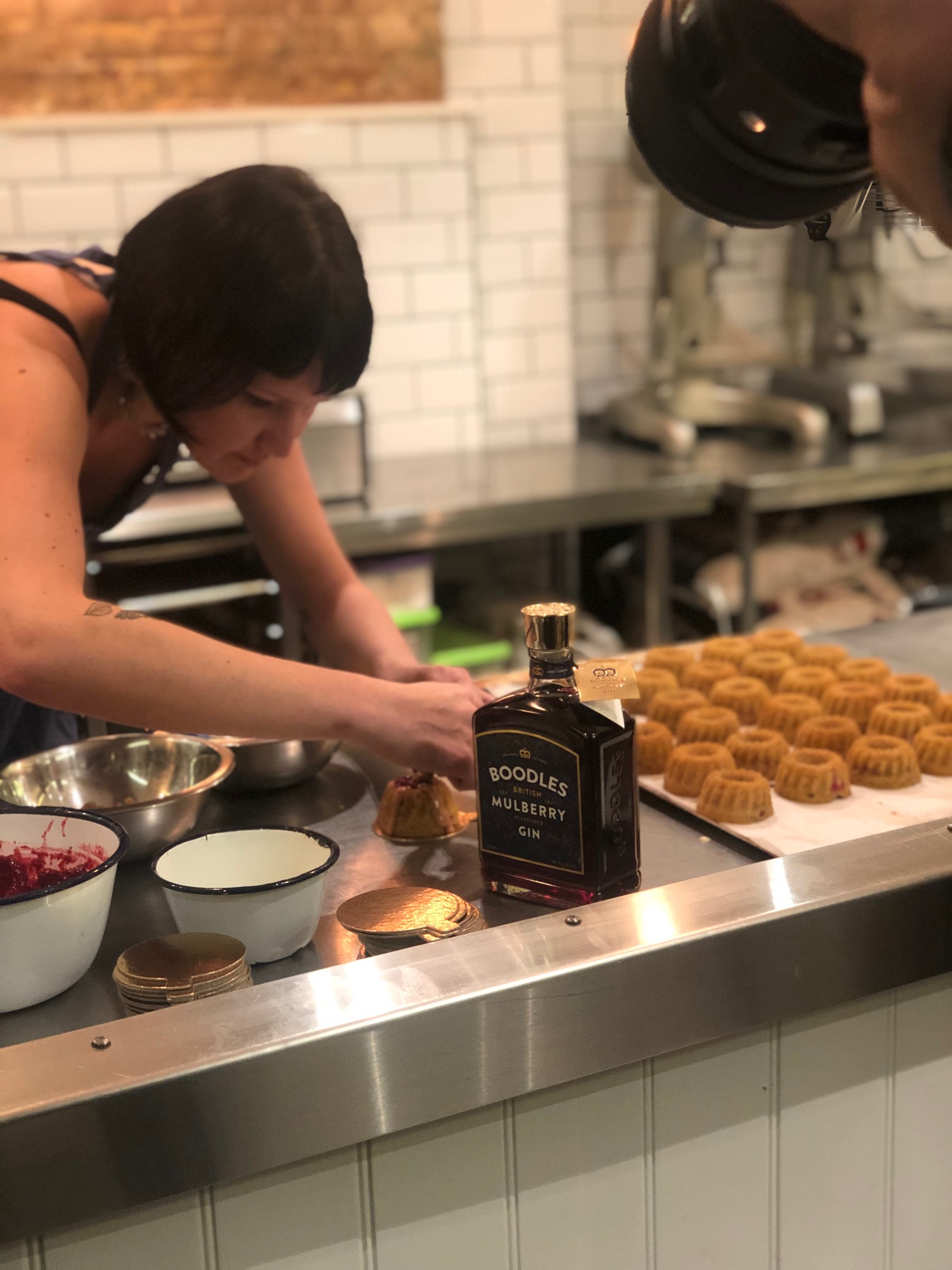 On 5th December we joined Lily at her artisan bakery just off Columbia Road and representatives of Boodles Gin to have taste and decorate the dairy-free Boodles Mulberry Delight cakes. Lily enthralled us with her demonstration of how to make the cakes. The recipe is below and makes 15 cakes. Now anyone who knows me knows I hate being in the kitchen and have no patience for baking, but this recipe seemed so quick and easy I think even I could make it.