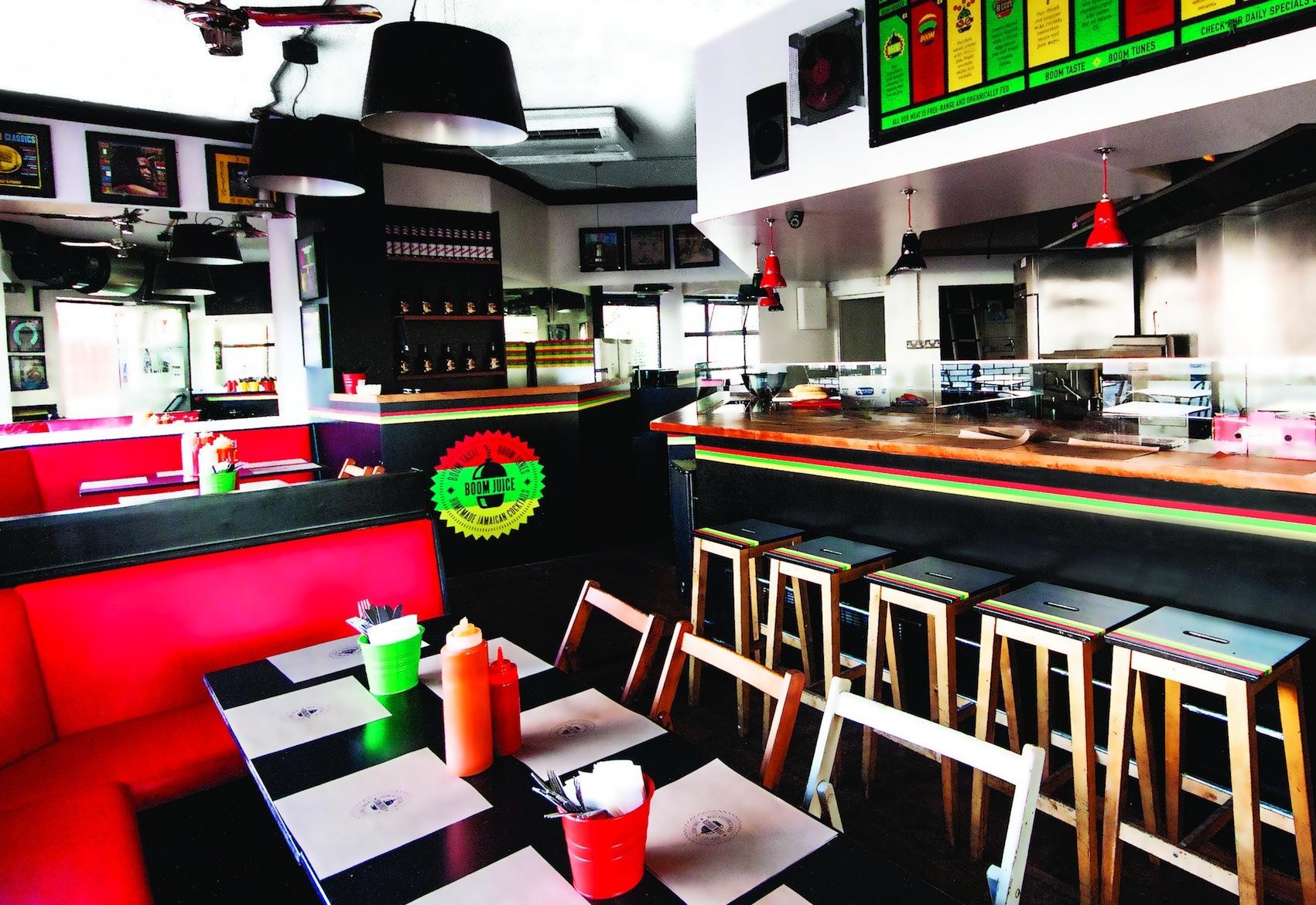 boom3The menu is very limited; very very limited by restaurant standards but remember this is a small burger restaurant that is specialising and it all hangs together extremely well.  Heads up; there are no deserts.  For starters we shared a couple of dishes between us.  The Jerk chicken wings were well seasoned (salty but not too salty), not too spicy, juicy and meaty.  Really delicious.  The Saltfish patties were even more of an amazing surprise:  Obviously fresh with the texture and resistance that good fresh fish gives; and without any overt “fishiness” with just the right amount of chilli and good use of red onion.  Portion sizes were perfect; just right.