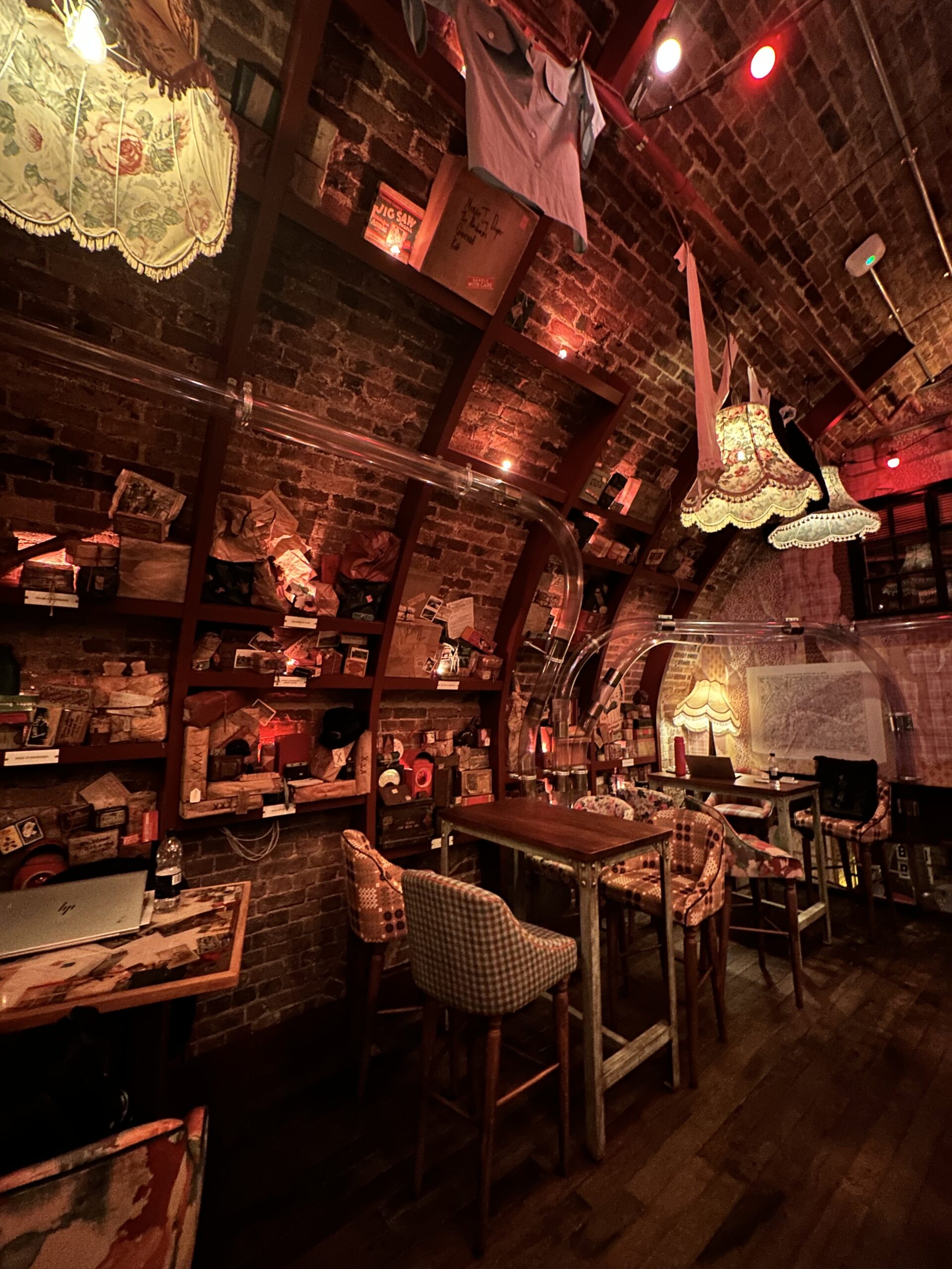 A pneumatic cocktail delivery system will send drinks whizzing through air-powered tubes overhead. There was a brief demonstration on the night but it wasn’t being used so we sadly couldn’t get our cocktails this way. We do think it’s a clever and fun way to deliver drinks to select tables.