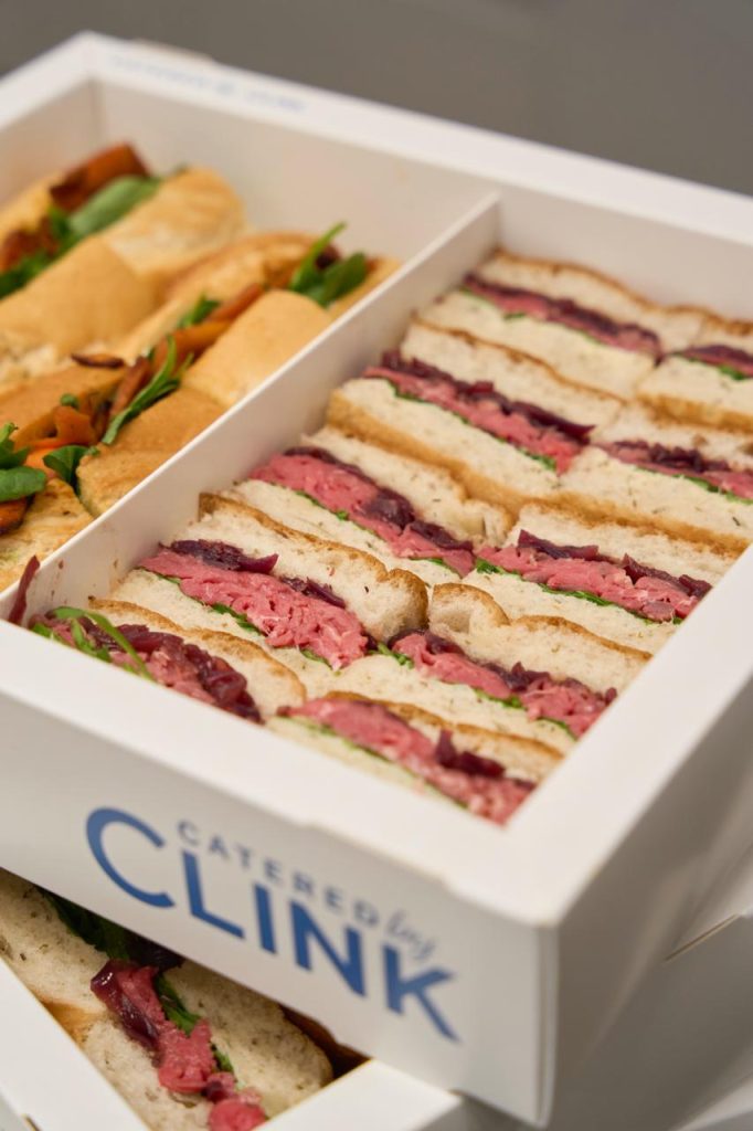 The Catered by Clink catering menu spans breakfast, lunch and canapé boxes, with ready-to-serve pastry platters, finger sandwiches and canapé selections ideal for meetings, events and office gatherings. Office and workplace catering is available for delivery across London and the Home Counties, making the service particularly suited to corporate and professional settings.