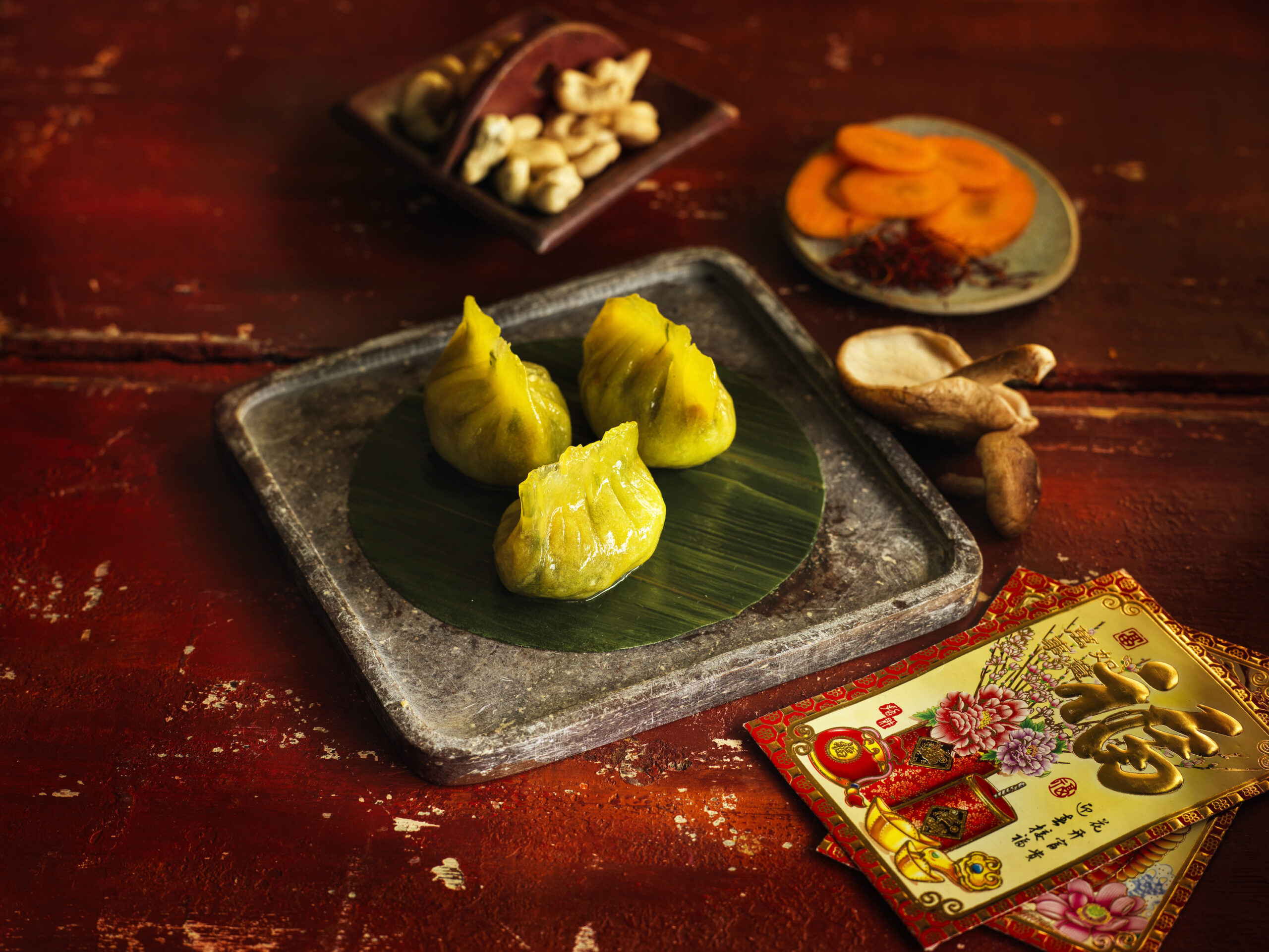 For those with a sweet tooth there is a delicious fluffy Black and gold Bun – fluffy black steamed cantonese bun filled with creamy salted egg custard, the perfect treat to end a Chinese New Year banquet!