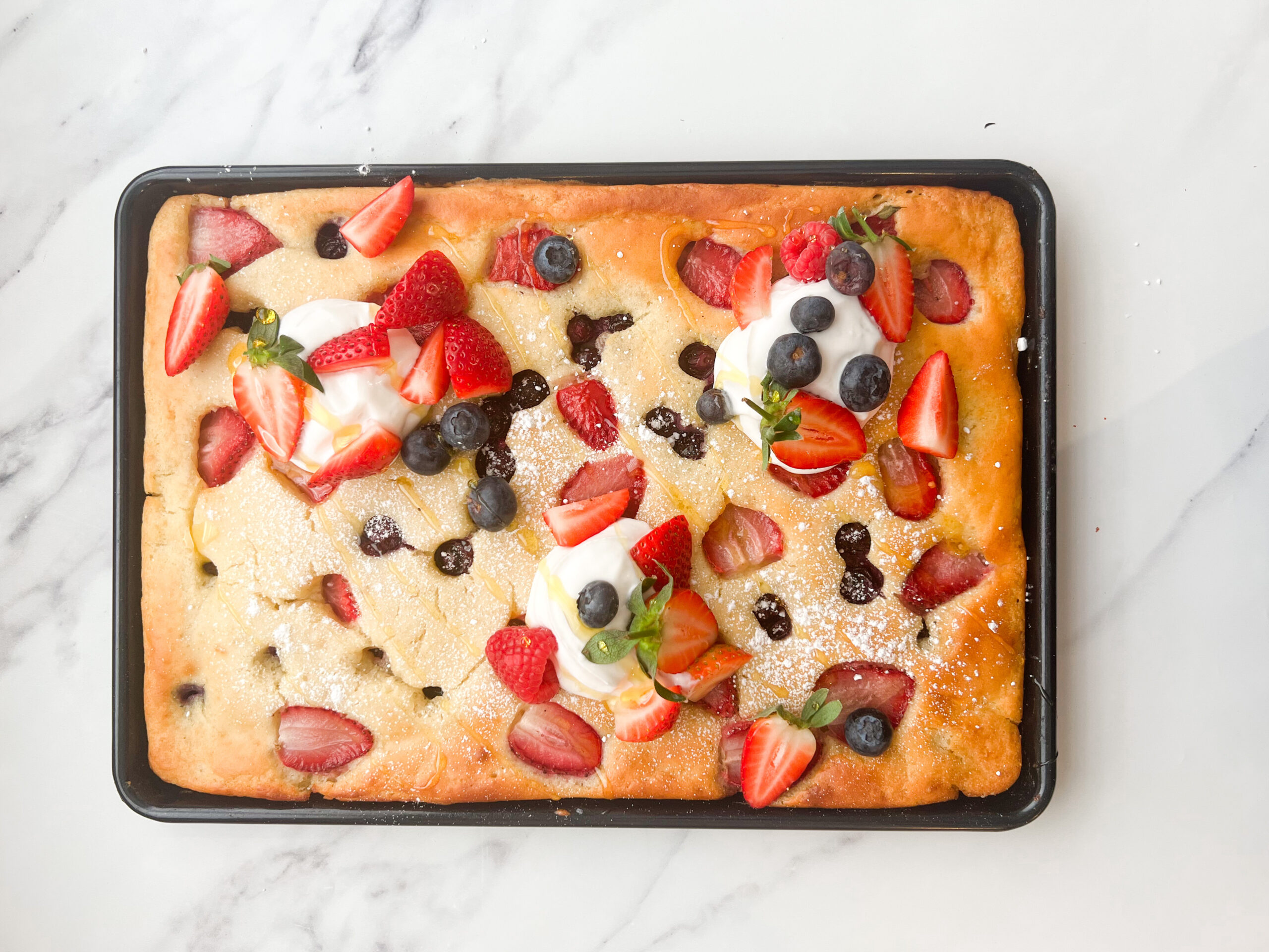 This combination of pancakes within a traybake makes for the perfect recipe – delicious, without the time and effort pancakes can take.