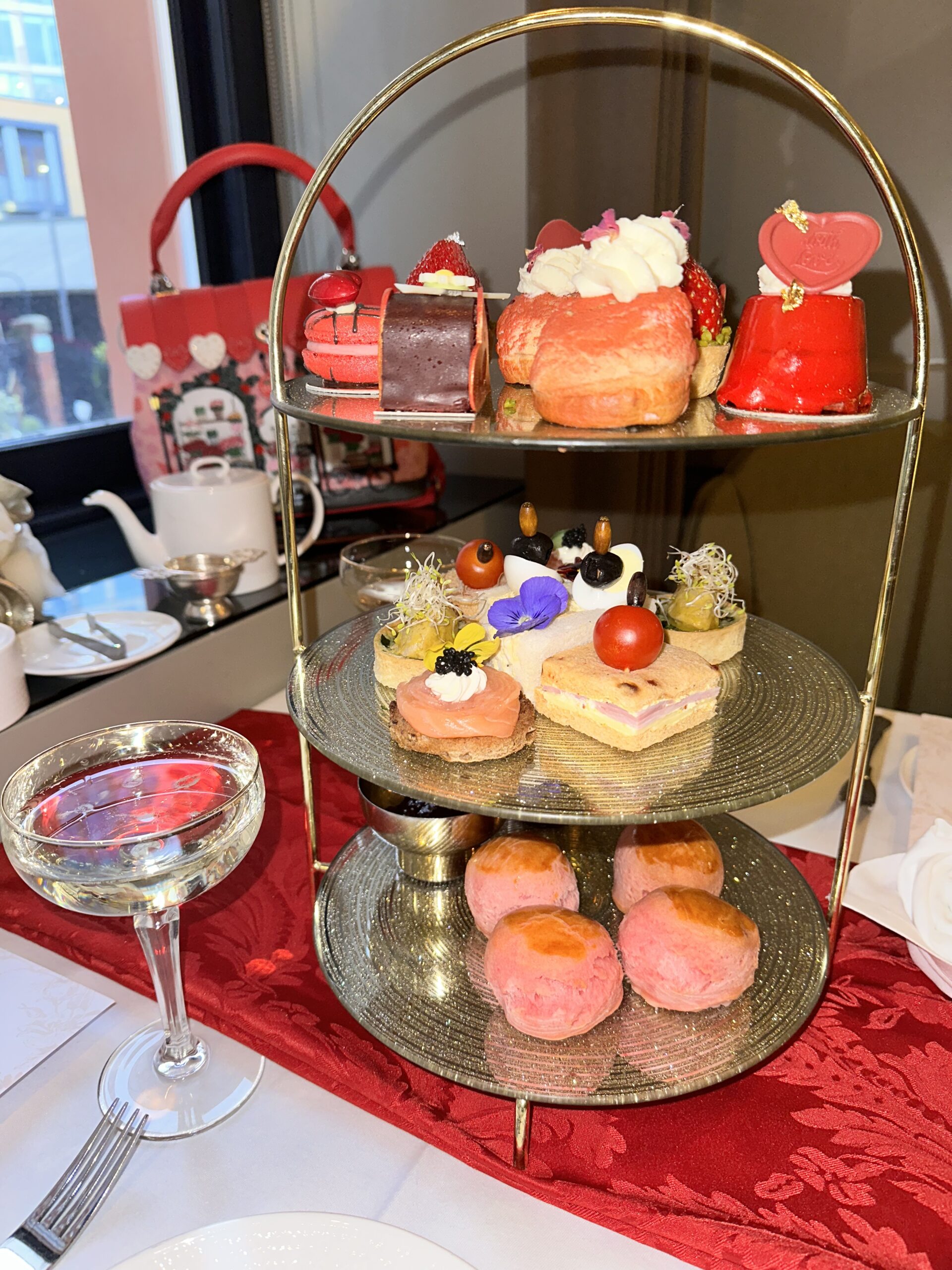 Food wise… We loved the sandwiches, especially the salmon which was shaped into a rose! And the rose scones, red velvet cake and raspberry macaroons were divine. There were also delicate rose profiteroles which unfortunately weren’t our favourites but this was a minor thing as everything else was top notch!