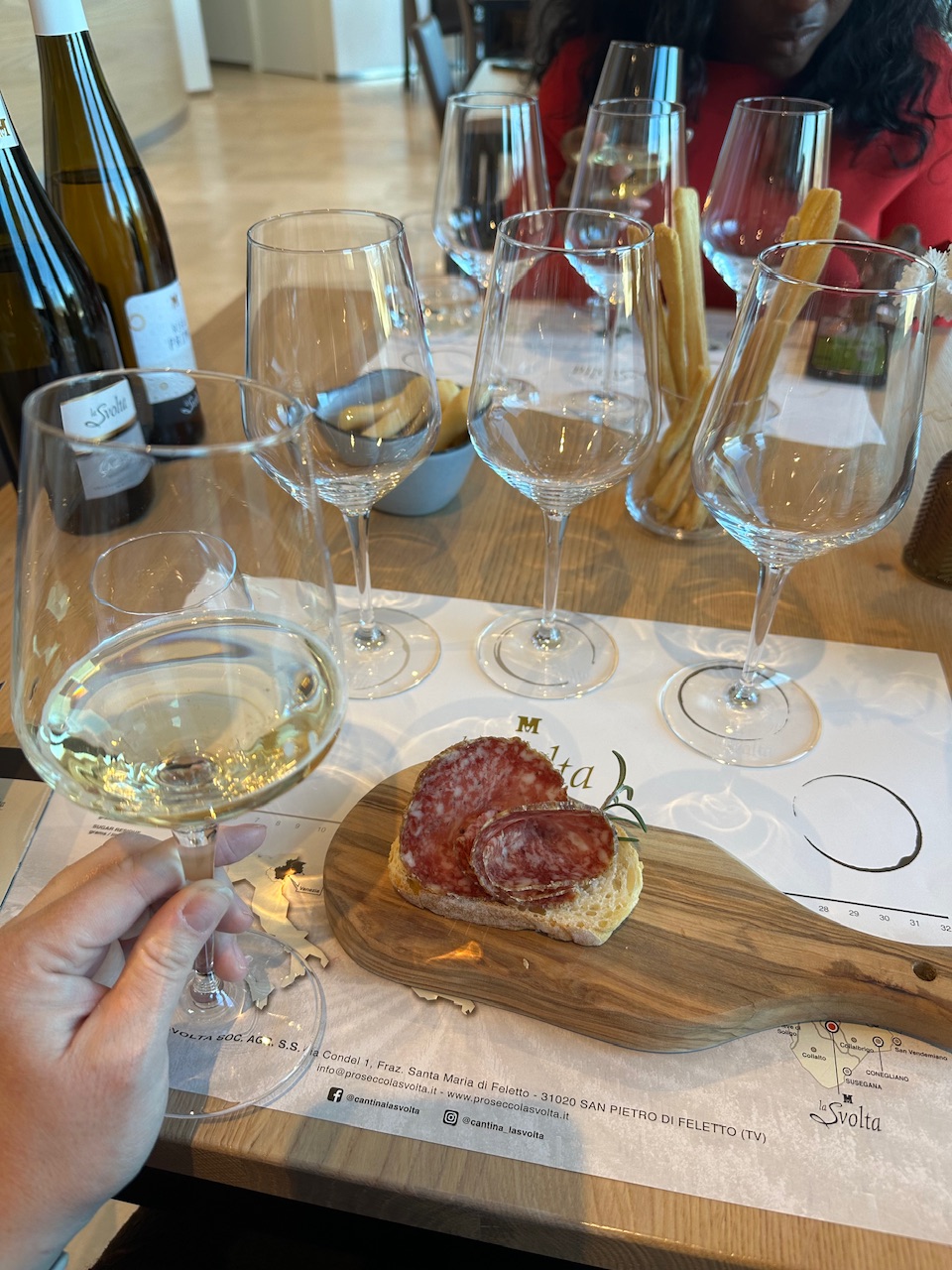 After a few beautiful scenic spots along the Prosecco Road we stopped at our first winery, La Svolta where we met Francesca. La Svolta is a family run winery and Francesca spoke fondly about how each other family members live on the property and the different jobs they do to ensure the best Prosecco production each year. https://www.proseccolasvolta.it/