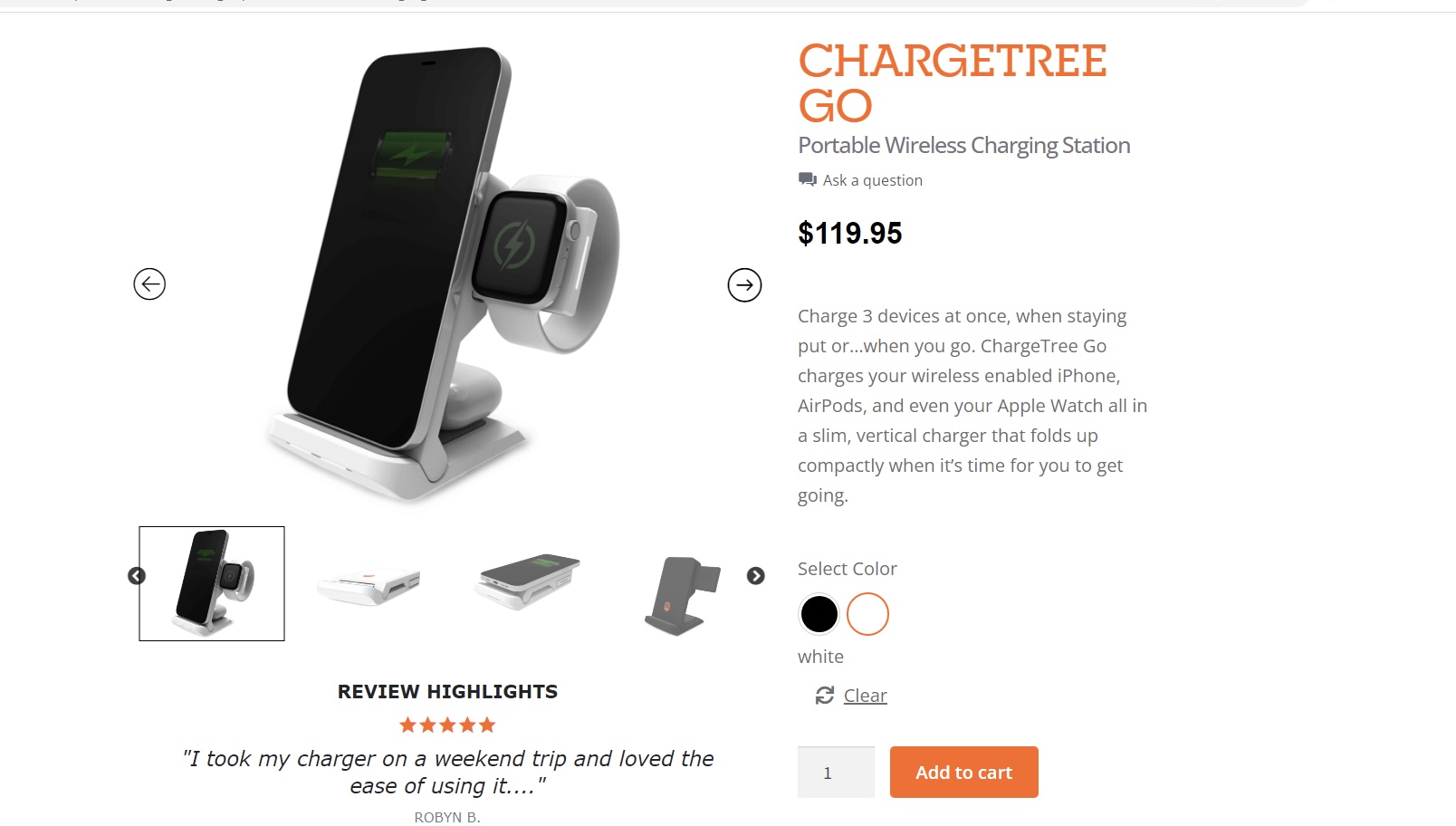 The on-the-Go ready version of the popular ChargeTree is a game changer. The slim, vertical format takes up minimal space on a desk or nightstand while charging three devices at once with a single cord, and the pop-out watch platform even enables nightstand mode. Folds compactly to travel from home to office to hotel and