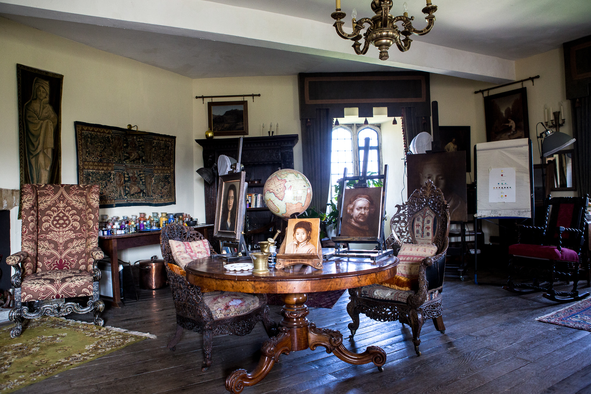 The tower which you can see below on the right, was the only tower to survive the fire. It is now being used for Art workshops, Cowdray’s Artist-in-Residence, David Cranswick, is the course instructor, you can see his magnificent art studio below. Needless to say just standing in the room, got my creative juices flowing.