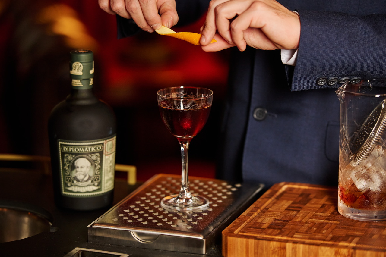 Guests of the bar, restaurant and hotel can enjoy the cocktails as part of a theatrical tableside ritual. A bespoke Diplomático nightcap trolley is brought directly to the table, where a dedicated butler prepares each chosen cocktail in front of guests, bringing the performance and precision of the bar into the moment.