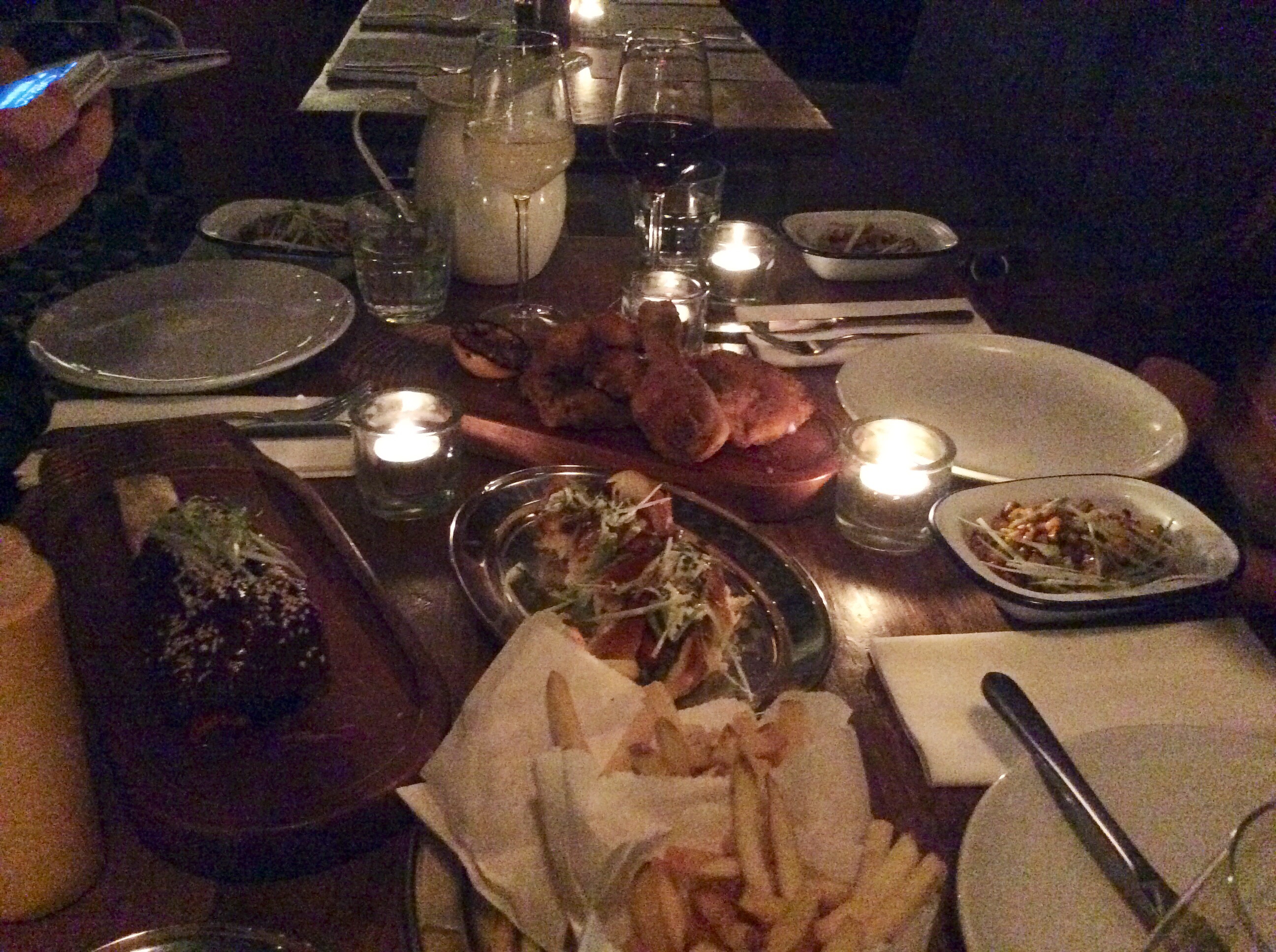 After being given sharing plates and a load of extra candles to brighten up the ambiently lit table, the food was out in jiffy. The ribs literally fell of the bone, and when teamed with a little of their BBQ marshmellow sauce (yea as good as it sounds) was lush. The chips wee thin and really crispy which ticked the triple cooked chip box! However for some reason they