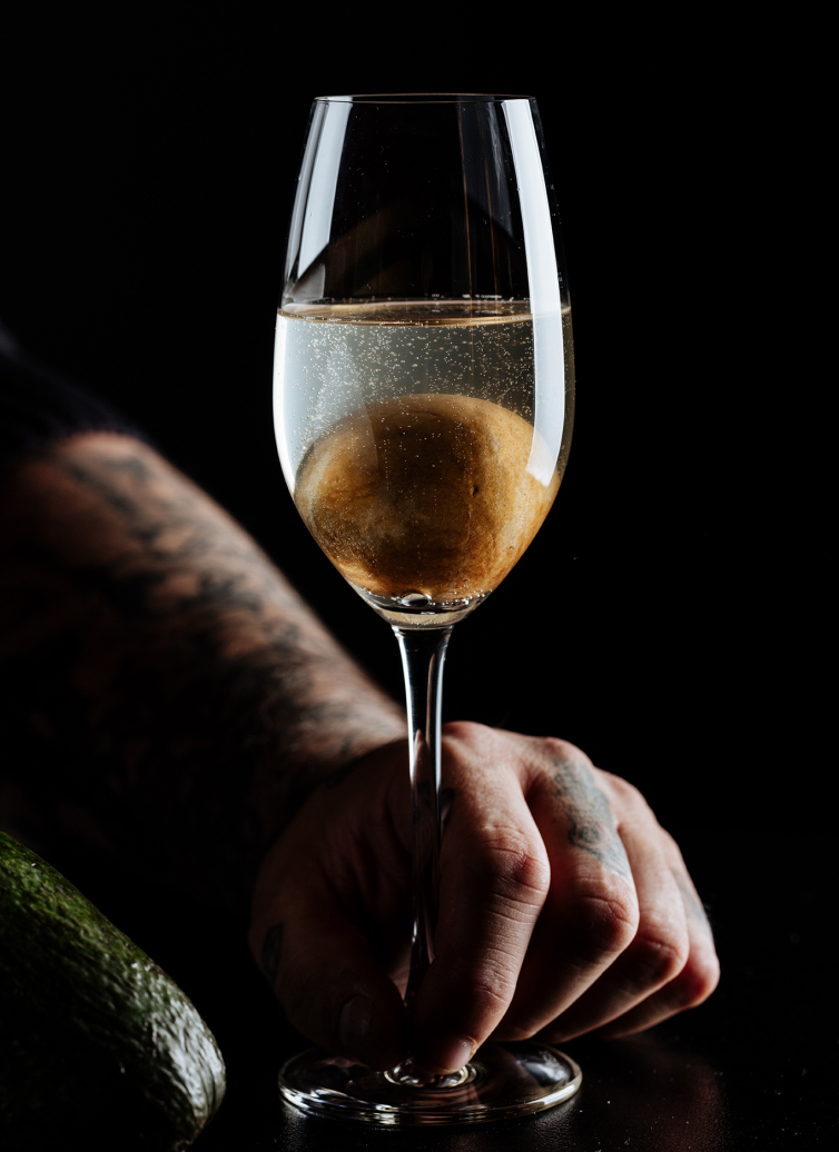 Bacardi Carta Blanca rum, avocado liqueur, ‘super-dry’ avocado pit bitters, Prosecco.