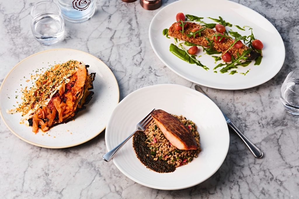 The set lunch menu opens with a selection of vibrant, well-balanced starters designed to energise rather than overwhelm. The Quinoa Protein Bowl is a standout choice, delivering freshness and nourishment in equal measure, while the Roasted Portobello Mushrooms offer a rich, umami-driven alternative that showcases Duck & Waffle’s flair for elevating vegetables into centre-stage dishes.