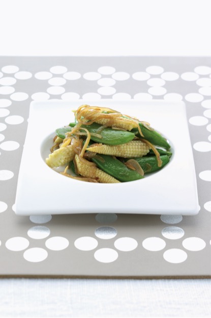 Baby Corn and Sugar Snaps with Ginger and Garlic (Pad Yod Kao Pod KabKhing)
