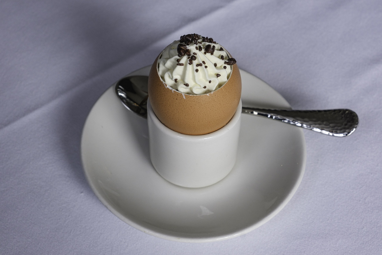 Our fifth course was the delicious Chocolate egg. Chocolate mousse, salted caramel and almond chantilly served in a real egg! It was such a charming little taster before the main event!