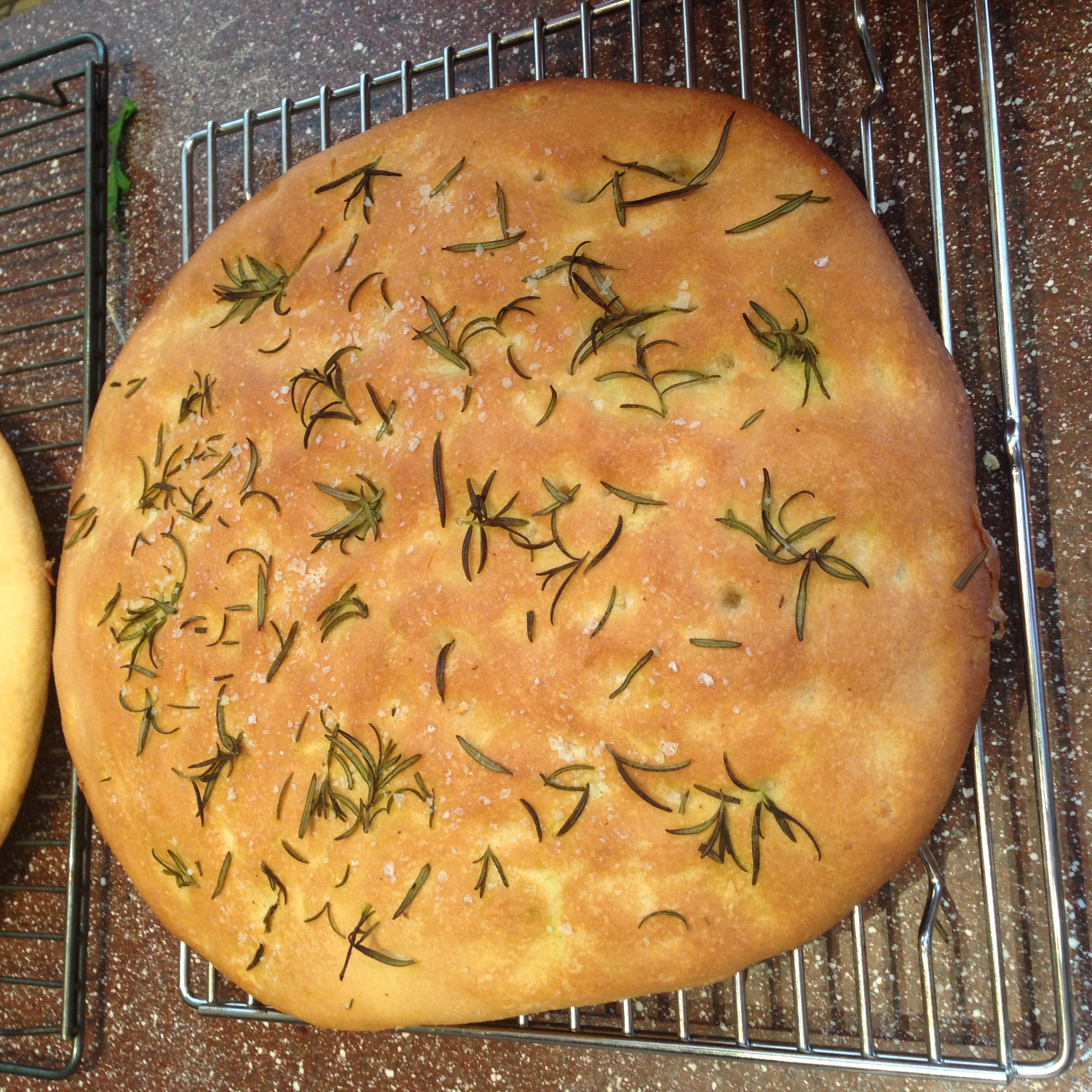 Nicely proved during the morning session it was back to the focaccia ,and time to strech it out the dough and add the sea salt & rosemary then into the oven.