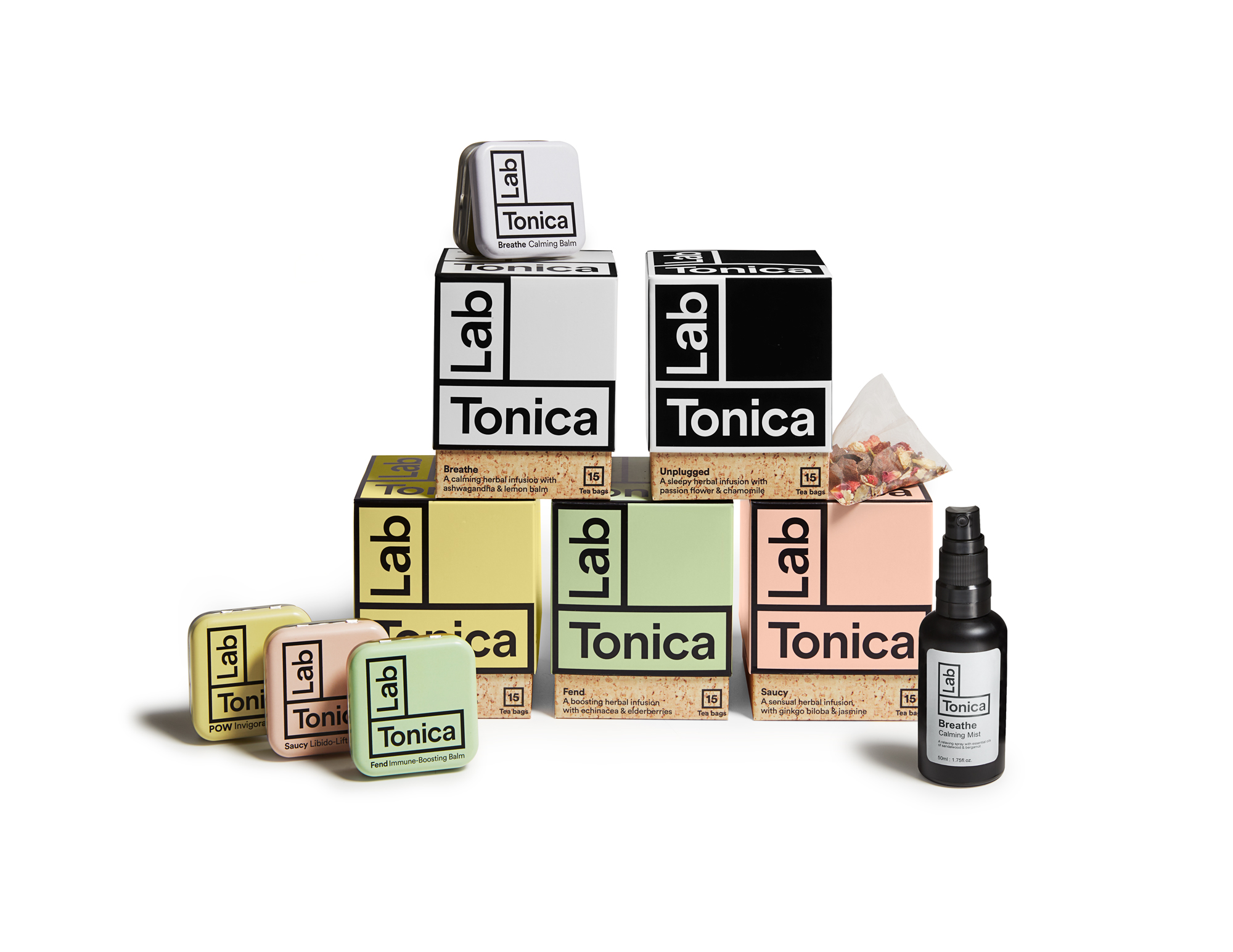 The collections include herbal teas £9, aromatherapy balms £15 and pillow mists £15. Gift sets from £22. Available for purchase at labtonica.co.uk. Follow @labtonica on Instagram.