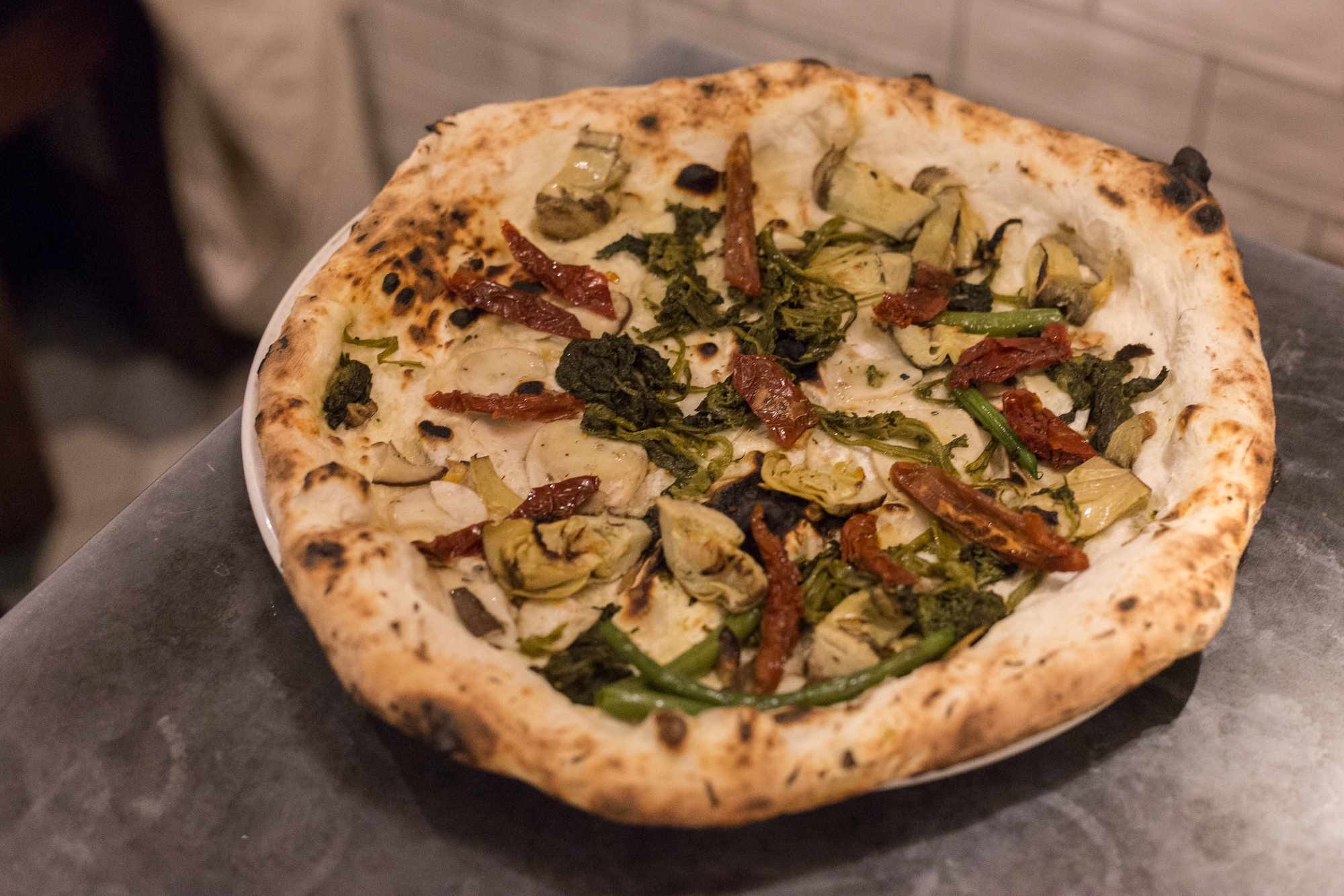 Firstly what you need to know, is what gives them the edge… and that’s down to the pizzas being made in the traditional Neapolitan style, which means that there are rules that they must stick by, the type of oven in which the pizza is cooked in, the way the dough is kneaded and the selected ingredients used. If you’re after a Hawaiian pizza this place isn’t for you. The restaurant has a very contemporary look and feel to it with a wood-burning oven in the middle, where you can see the chefs work their magic.