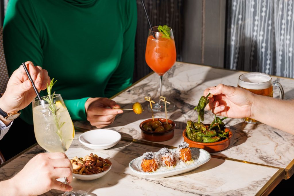 To complement the drinks, the terrace menu focuses on simple, flavour-led plates designed for sharing. Highlights include house-marinated Gordal olives, Chorizo croquettes with aioli, and Brie on toast with truffle honey, as well as a selection of premium cured meats such as Ibérico de Bellota and aged Parma ham. Guests can also opt for larger bites like Pizzetta marinara, with classic desserts such as Tiramisu rounding things off.