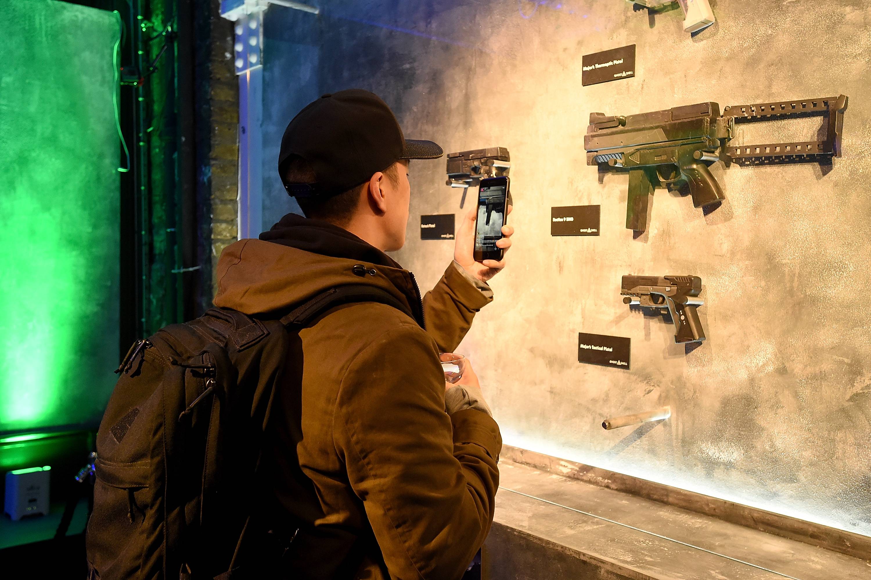 - Props such as a selection of guns from the film and a full-size bust of the geisha android (it was like being in a mini-boozy Planet Hollywood!)