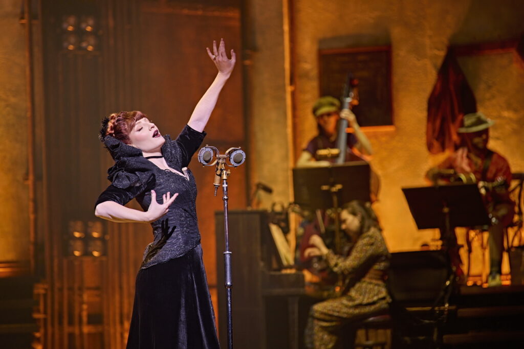 The score blends indie folk, pop, blues, and New Orleans-inspired jazz, creating a sound thsts both grounded and richly textured. With the musicians visible on stage—playing piano, drums, violin, and trombone—the music feels alive and immediate. I especially loved that the three Fates each play an instrument: tambourine, violin, and accordion. Their combined presence is haunting and powerful, a reminder that fate is never singular. ‘Road to Hell’ bookends the show with its infectious jazz rhythm—you’ll leave humming “it’s a sad song,” just like I did.
