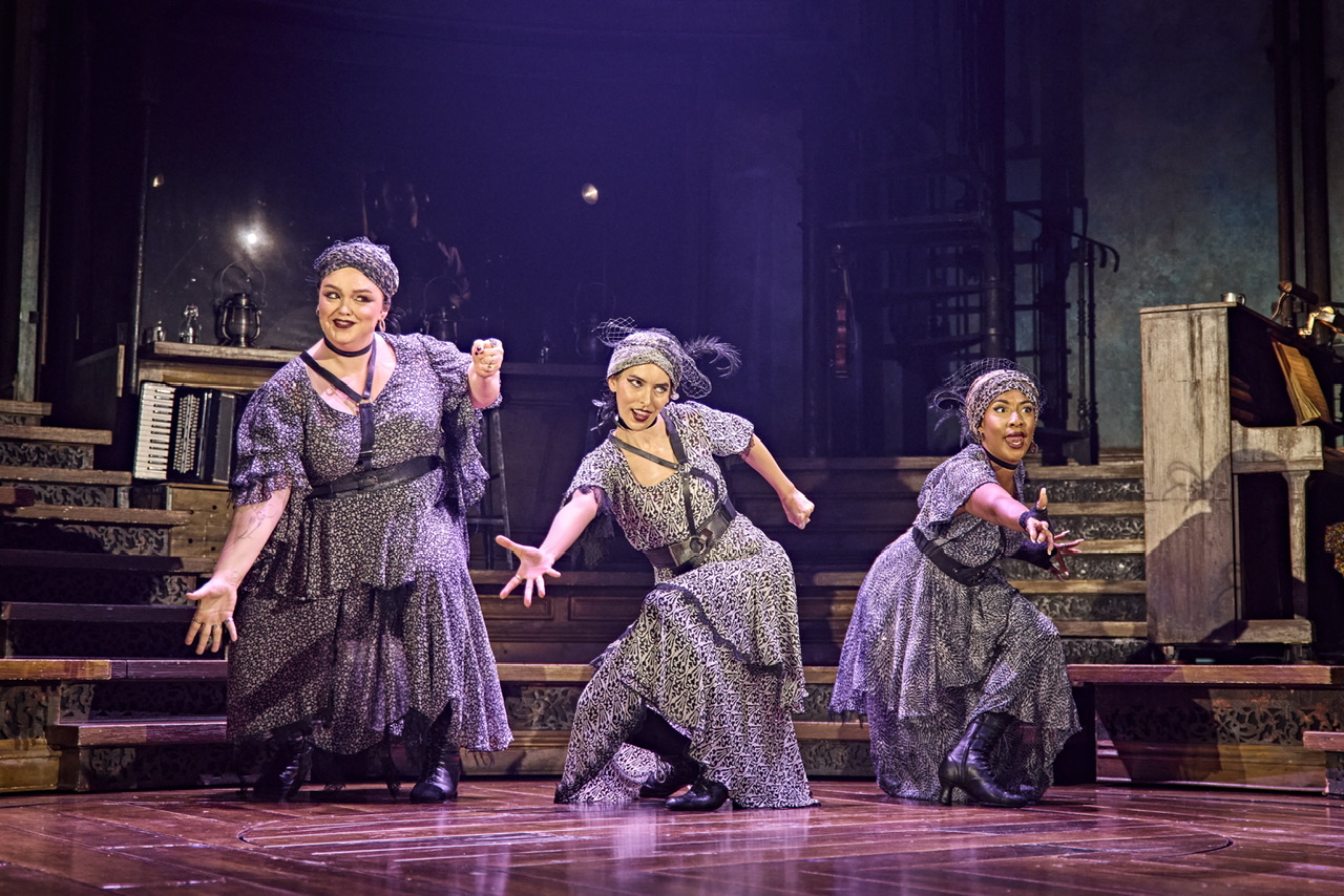 The score blends indie folk, pop, blues, and New Orleans-inspired jazz, creating a sound thsts both grounded and richly textured. With the musicians visible on stage—playing piano, drums, violin, and trombone—the music feels alive and immediate. I especially loved that the three Fates each play an instrument: tambourine, violin, and accordion. Their combined presence is haunting and powerful, a reminder that fate is never singular. ‘Road to Hell’ bookends the show with its infectious jazz rhythm—you’ll leave humming “it’s a sad song,” just like I did.