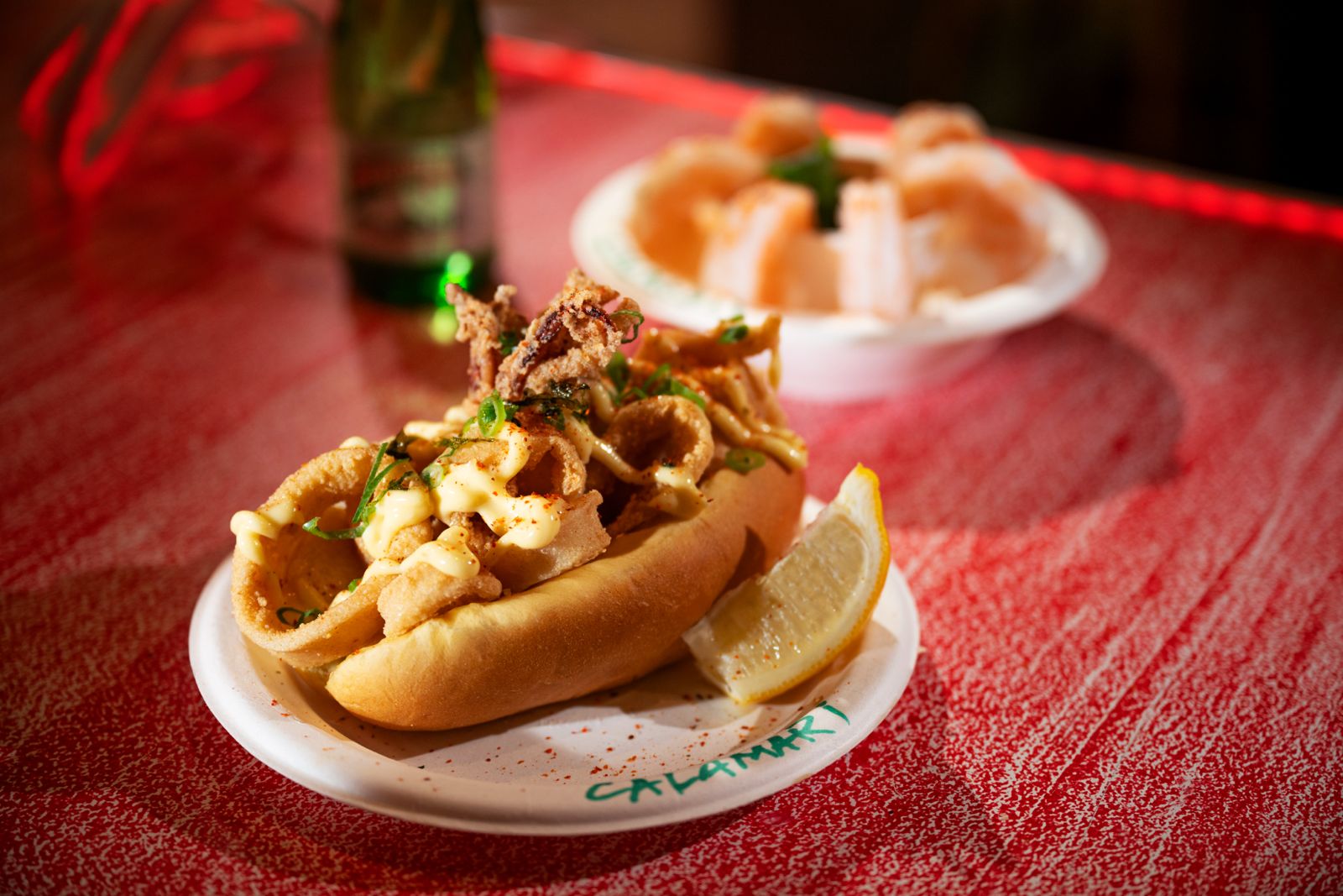 - Ika Ringu Bāgā – crispy calamari rings in a potato roll with ponzu–black garlic sauce