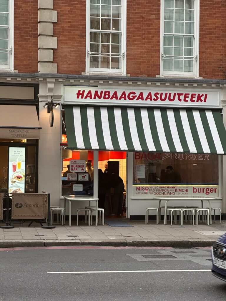 Hanbaagaasuuteeki is located on Buckingham Palace Road, directly opposite Shakeshake and Bleeker. Open daily from 11:30am to 11:30pm.