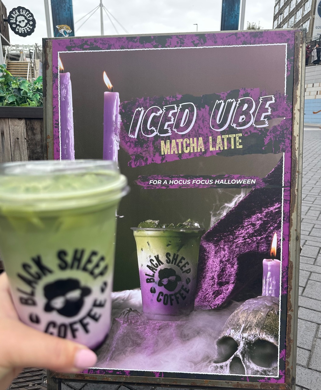 I’m Black Sheep Coffee is leaning into Halloween with a limited-edition Iced Ube Matcha Latte.