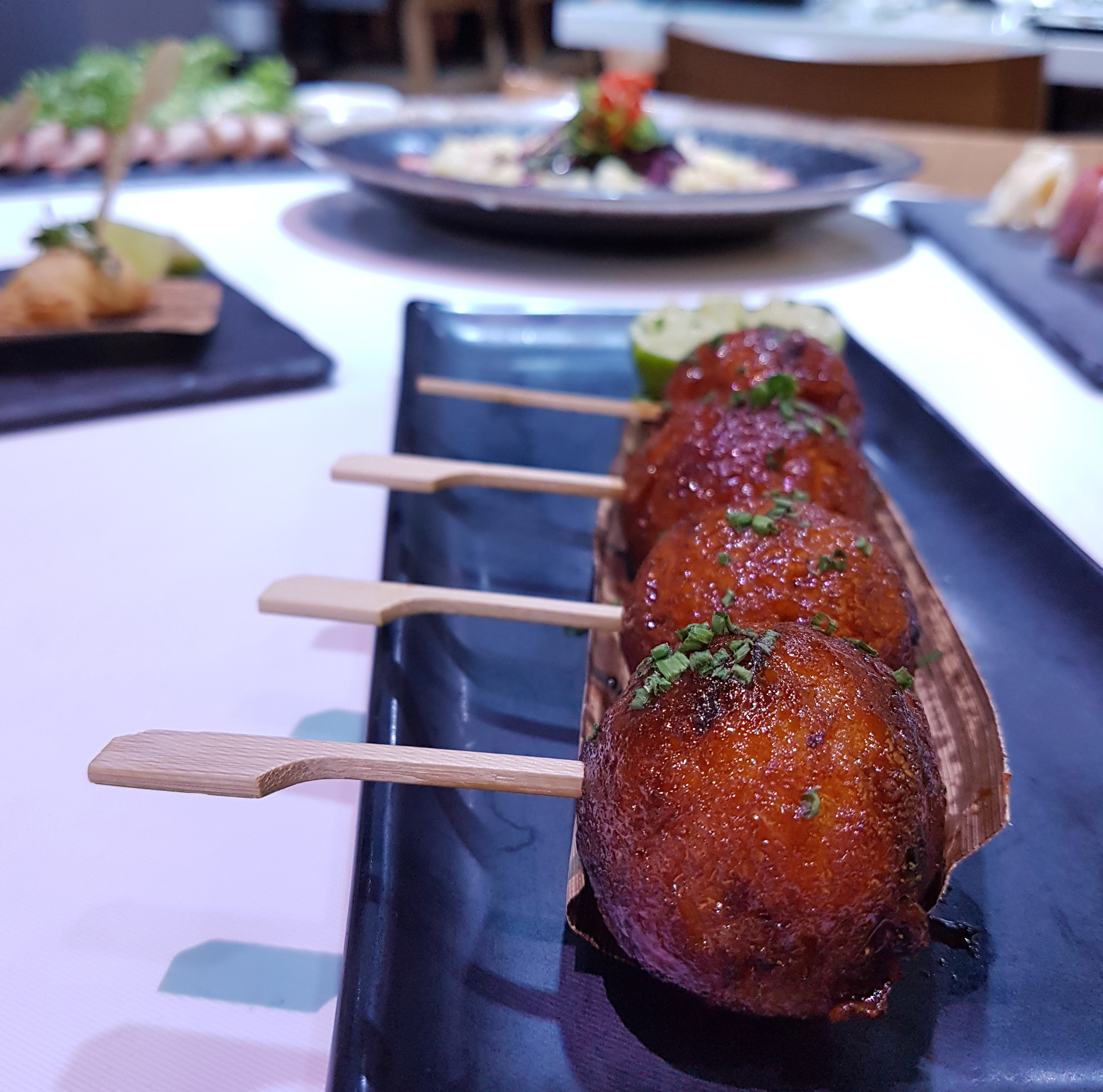 The Octopus Takoyaki though was our favourite Asain Tapas of the day. They were amazing and we would definitely recommend making sure this dish is added to your order. I personally also loved the Char Siu Buns though I ate them with soy sauce as my tangy Thai sweet chilli dipping sauce never arrived. To be honest I wasn’t fussed as there is something so good about pork filled steamed buns dipped in soy sauce. Salty delicious goodness!