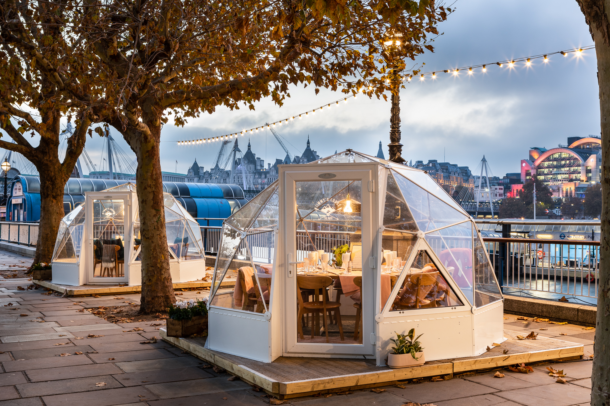 Also check out at The Lodge On The River, the super cute ‘Snow Globes’. There are four gorgeous private dining domes available to book and as already mentioned they hold up to 10 people per dome. Minimum spend is £600 but this includes food and drinks.