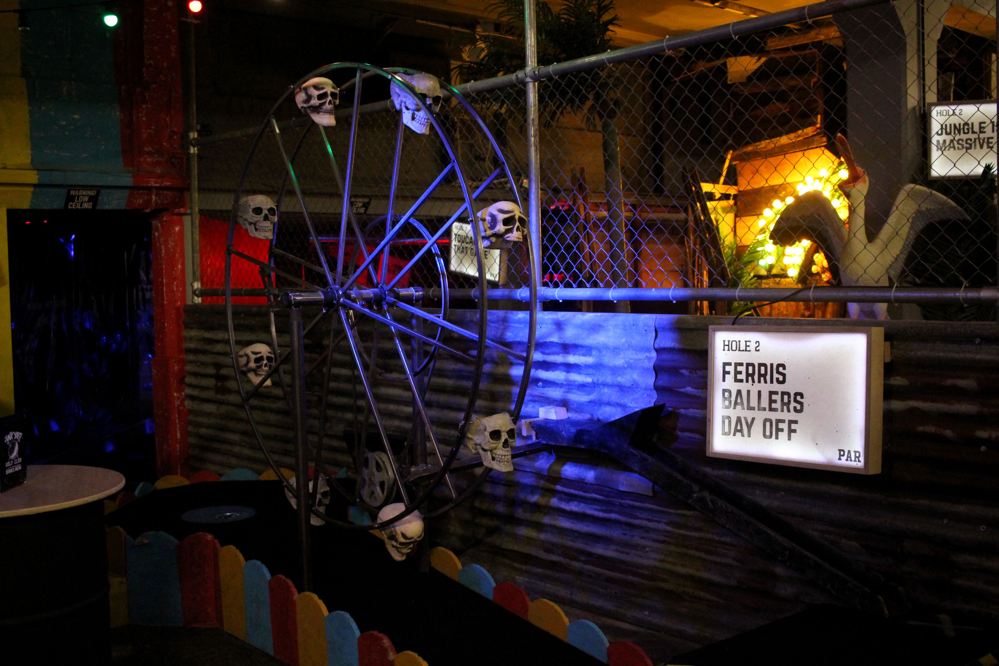 Our night out at this trendy place was a blast. We had many laughs at our not so great attempts at a few of the pars, went down the slide, glowed in the dark at the neon course, took me back to my childhood days of fun with a dodgem car and merry-go-round, cringed a little with the creepy clowns and big spiders and let the big kid inside lose for the night.