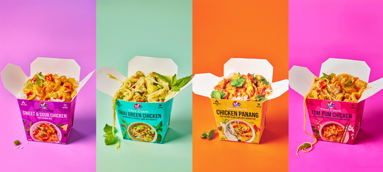 Featuring classic curries and modern fusion dishes, the Kitchen Joy range is made using traditional ingredients, fresh herbs and spices to create a ‘vibrantly Thai’ flavour. The new range includes six flavours: Tom Yum Chicken with Noodles (320g / 477 kcal), Sweet & Sour Chicken with Jasmine Rice (350g / 473 kcal), Spicy Sesame Chicken with Noodles (320g / 404 kcal), Thai Red Chicken Curry with Jasmine Rice (350g / 474 kcal), Thai Green Chicken Curry with Noodles (320g / 459 kcal) and Chicken Panang Curry with Jasmine Rice (350g / 512 kcal).