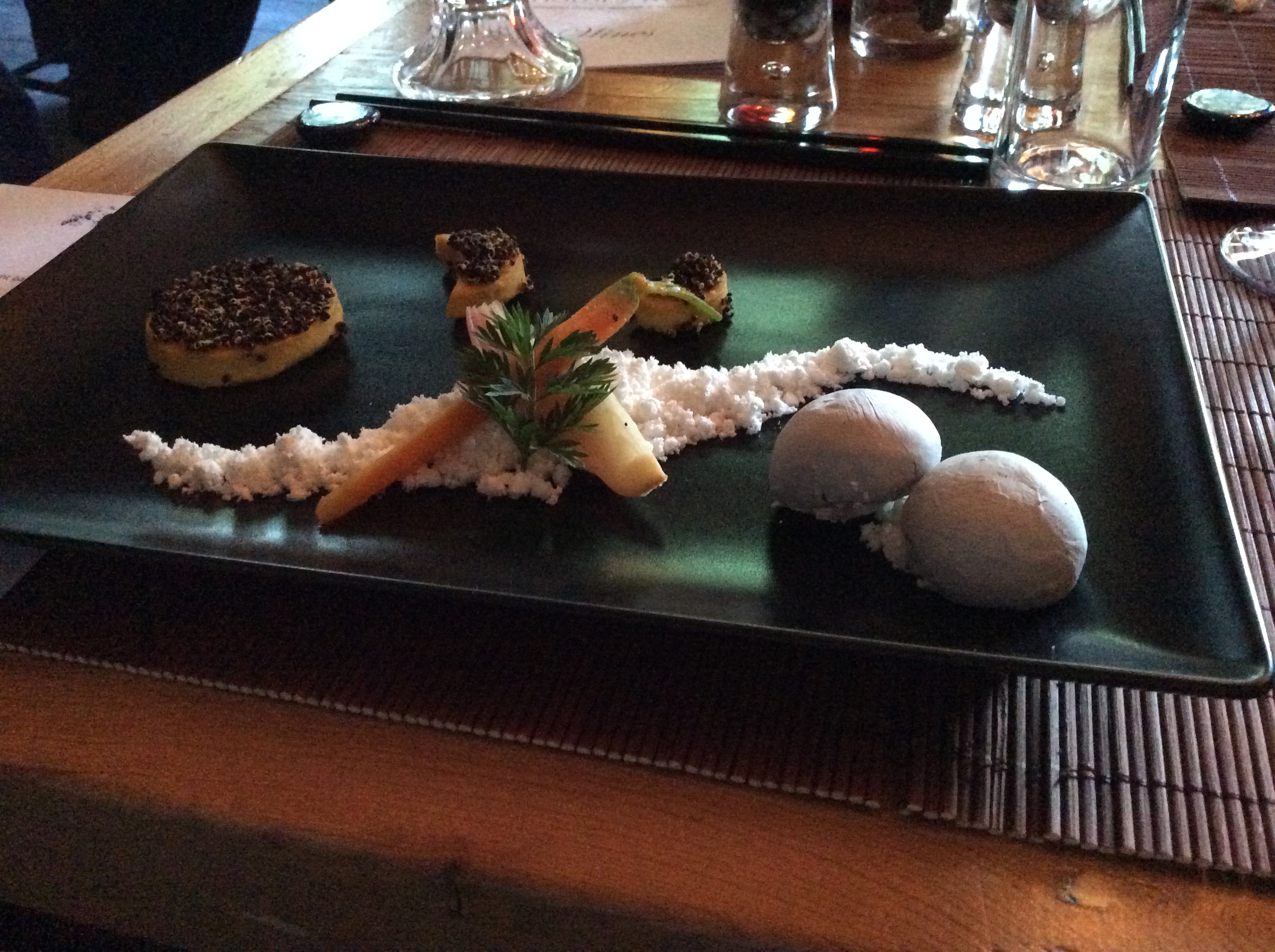 Now I’m never one to ruin the finer details because I believe the journey is the greatest part of the experience, so I won’t do as most would expect and explore all the dishes in great detail, but I will say the thought and imaginative elements that went into each was truly wonderful. The starter ‘Hassun’, was so beautifully displayed that I couldn’t resist tweeting a picture along with the caption “can I adopt kitchen theory”.