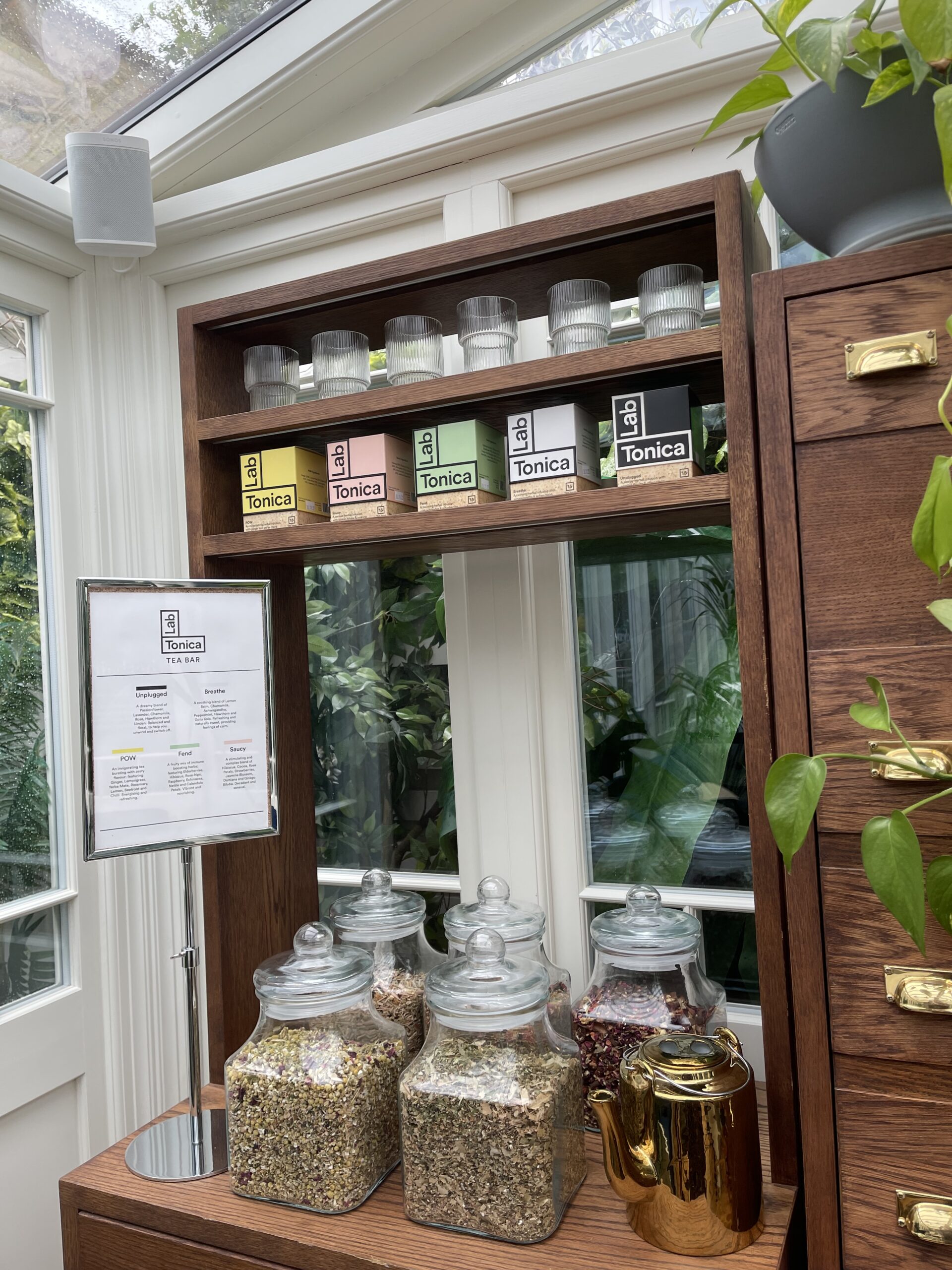 We were invited to try the teas at Gazelli House, a wellness centre in Kensington, where Lab Tonica has just launched. Kitty excelled at recommending teas to suit our moods. Given it was a relaxing Friday afternoon and we wanted energy for the weekend ahead, Kitty recommended the POW. Made from lemongrass, ginger, Yerba mate, rosemary, lemon, beetroot and chilli, it was a zesty, refreshing, enlivening brew. The kick of chilli really made this a spectacular choice.