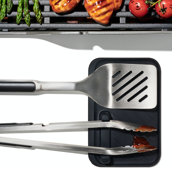 The 3-Piece Grilling Tool Set offers you all you need to master your summer barbeque, bringing together OXO’s Grilling Turner and Tongs with a heat resistant Silicone Rest to keep your hot barbeque tools safe when not in use. Simply pop the non-stick Silicone Rest on, or next to, your barbeque and use it to rest your turner or tongs as you cook. The Rest features a unique tong holder design so you can rest your tongs in an open position ready to use again. The tongs come with a handy bottle opener too. Dishwasher safe. RRP £35