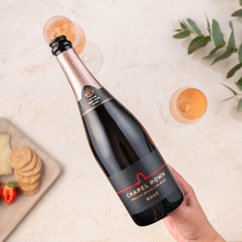 Personalised Perfection: Elevate Mum’s celebration with our Chapel Down Brut or Rosé, complete with customised neck labels. Available from 23rd Feb – 10thMarch 2024.