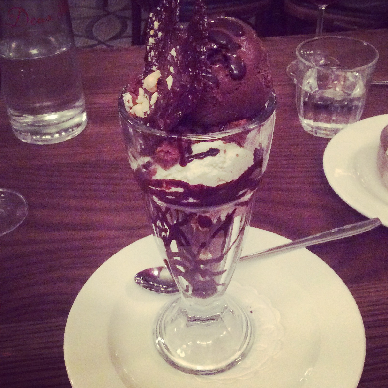 Although we had managed to put away steaks the size of our heads, the dessert menu looked too good to pass up! I chose a brownie sundae, while my friend (a boy may I add) opted for the lighter fruit sorbet choice.